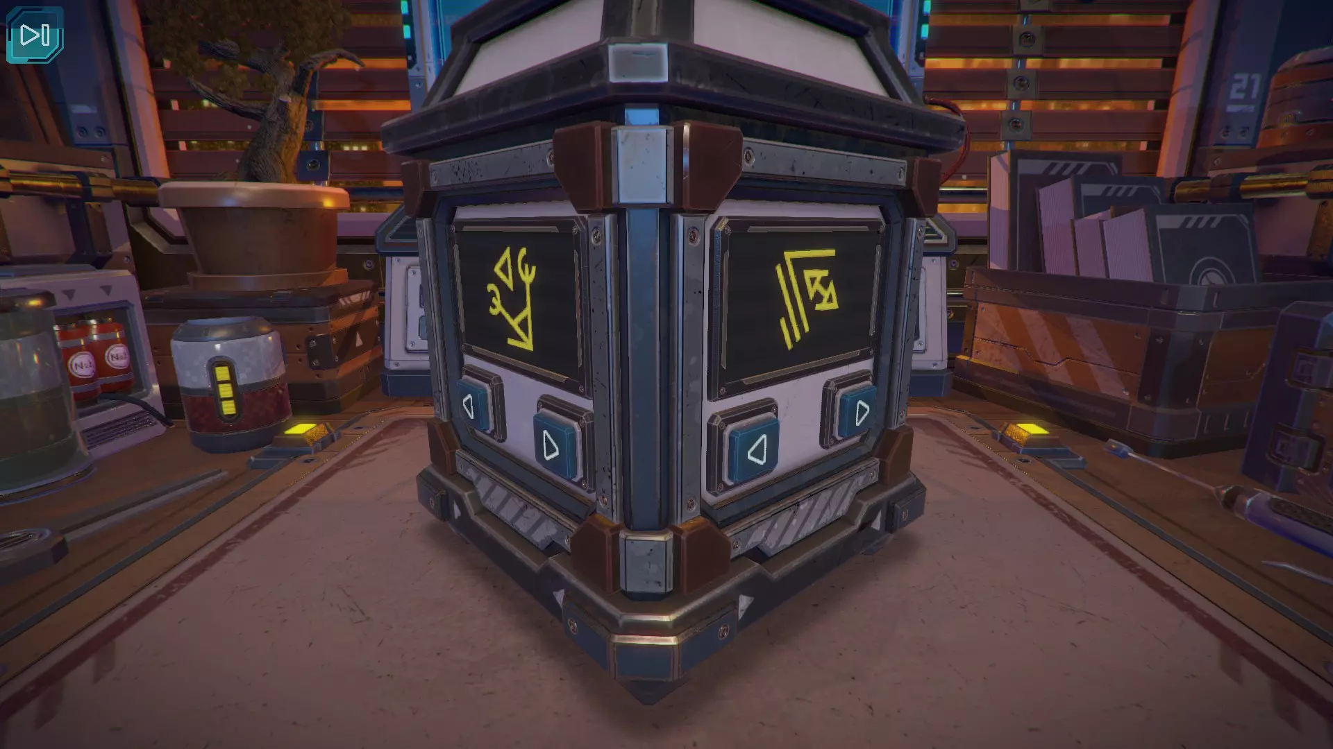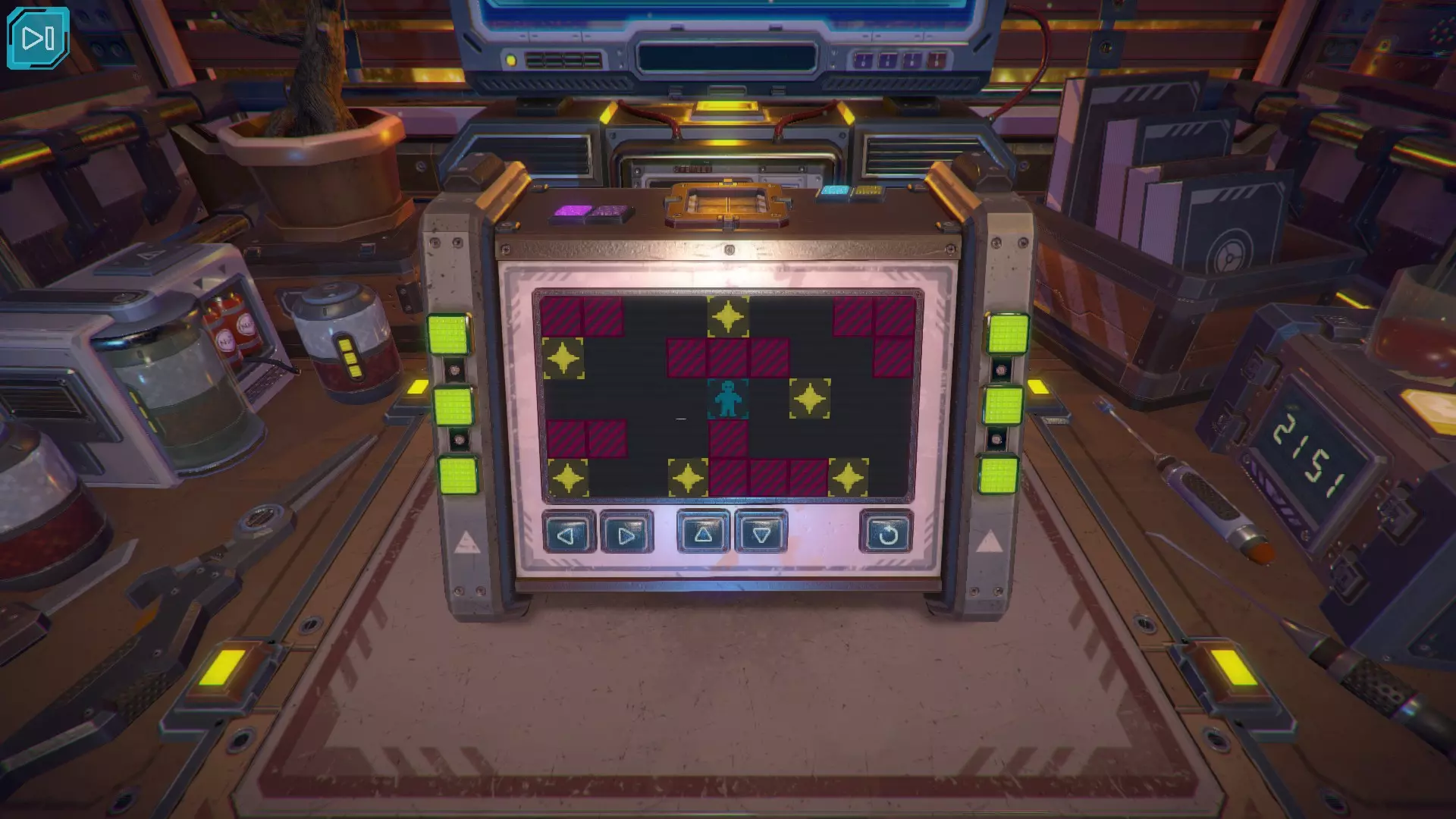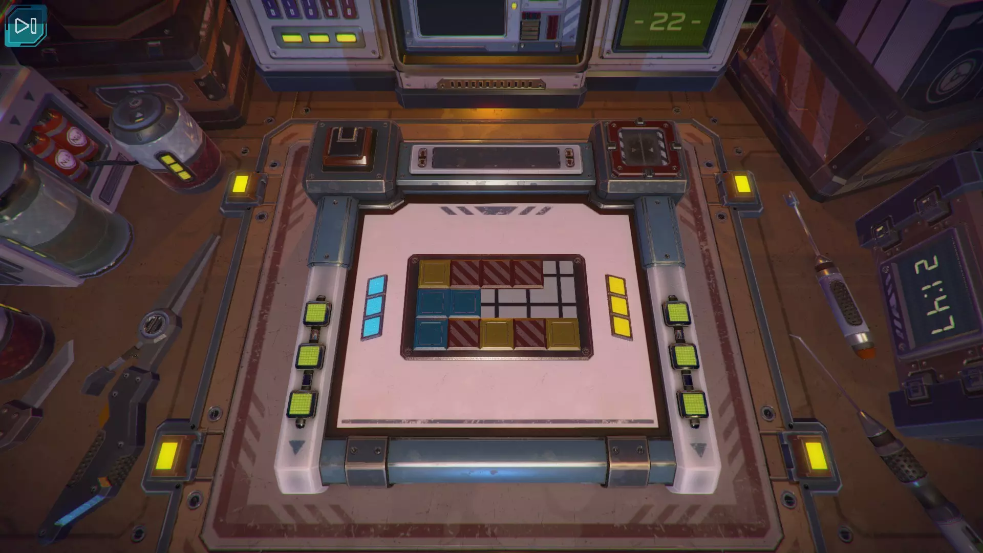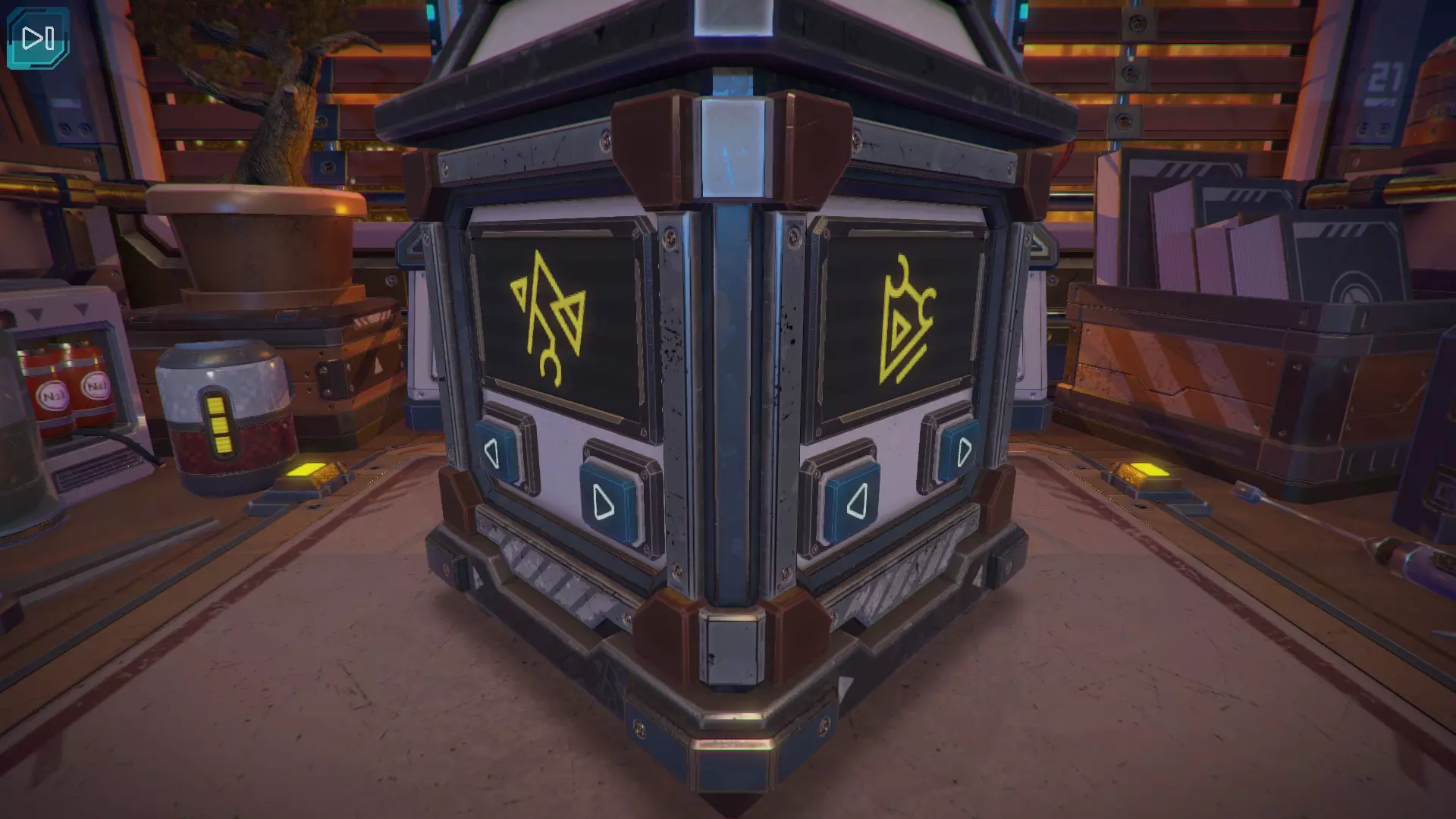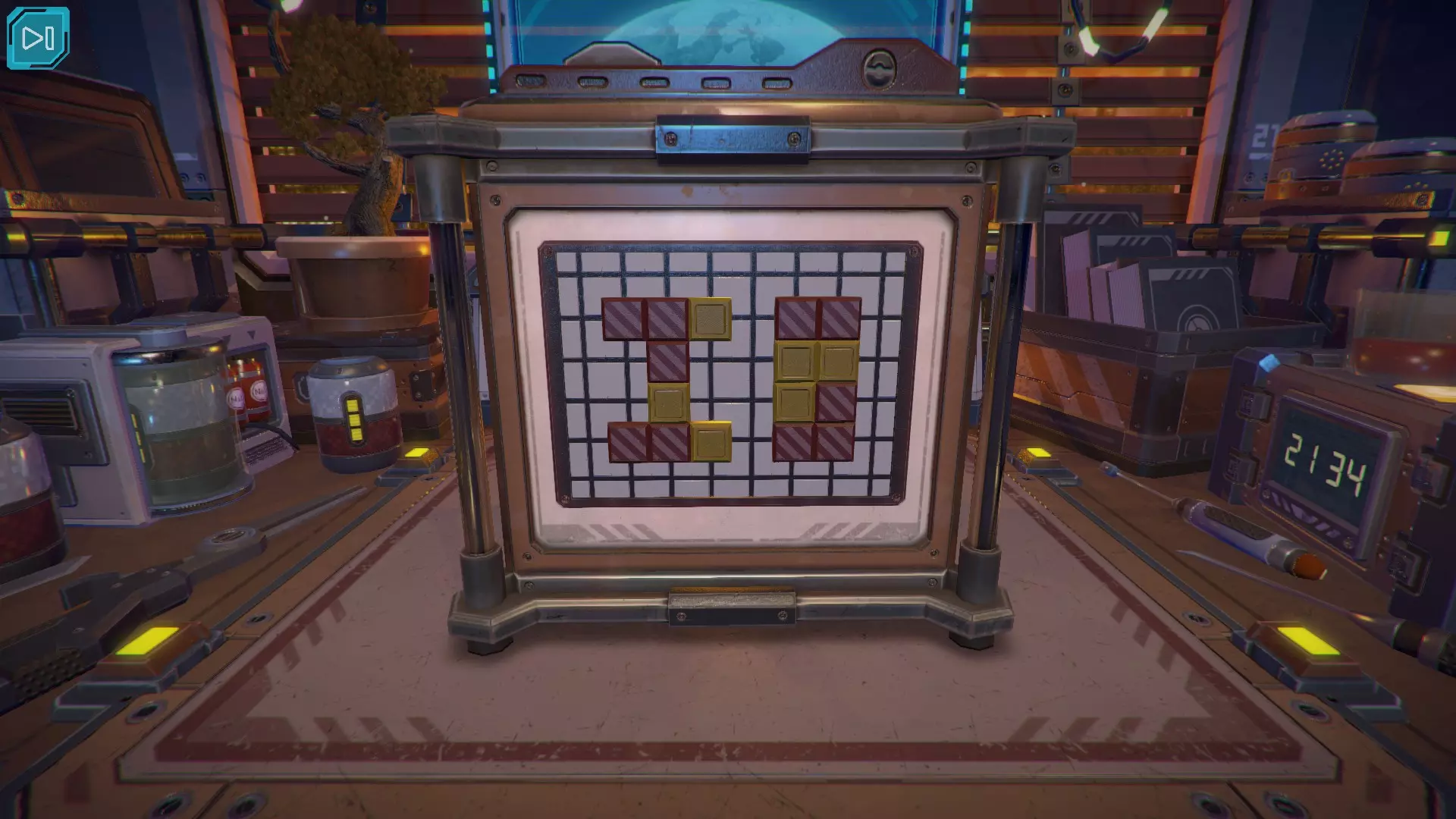 第8关:通过移动显示器边缘的两个紫色滑块,打开箱子后面的路径。