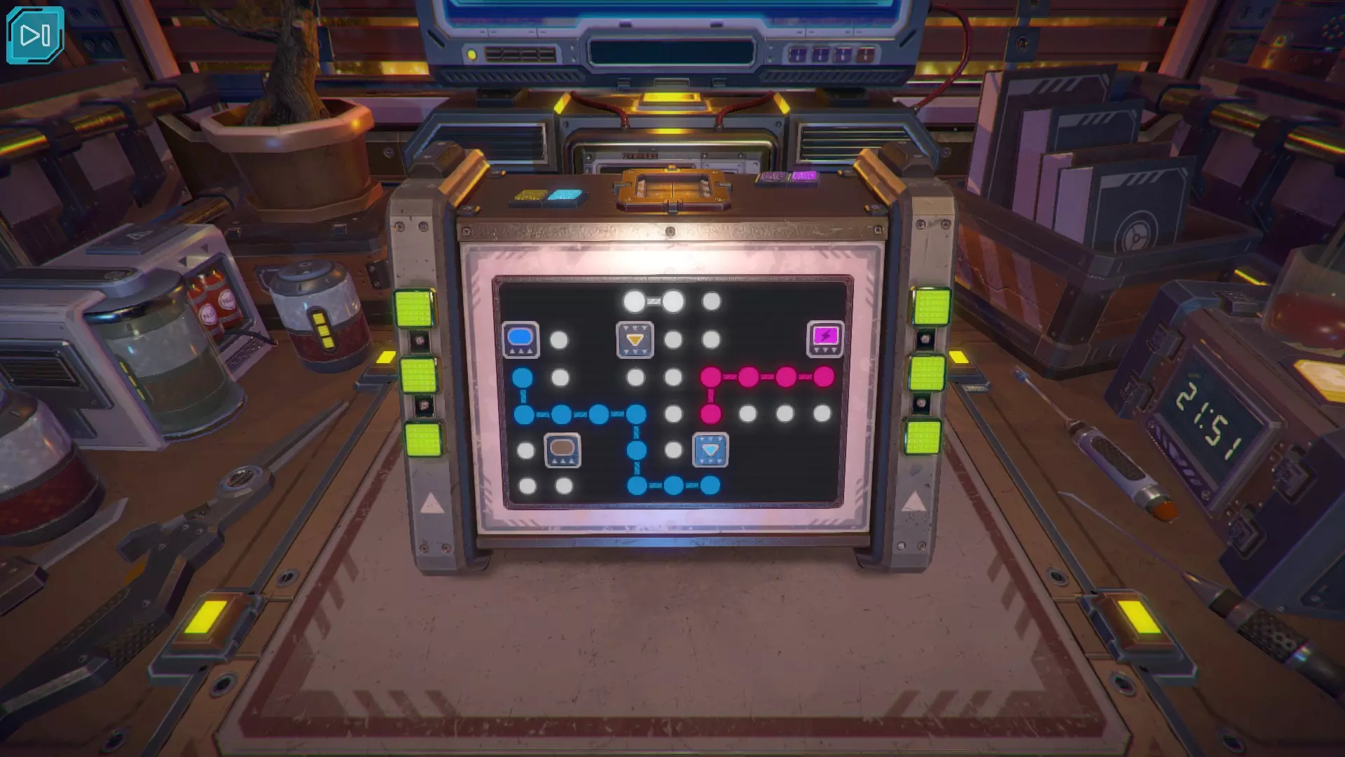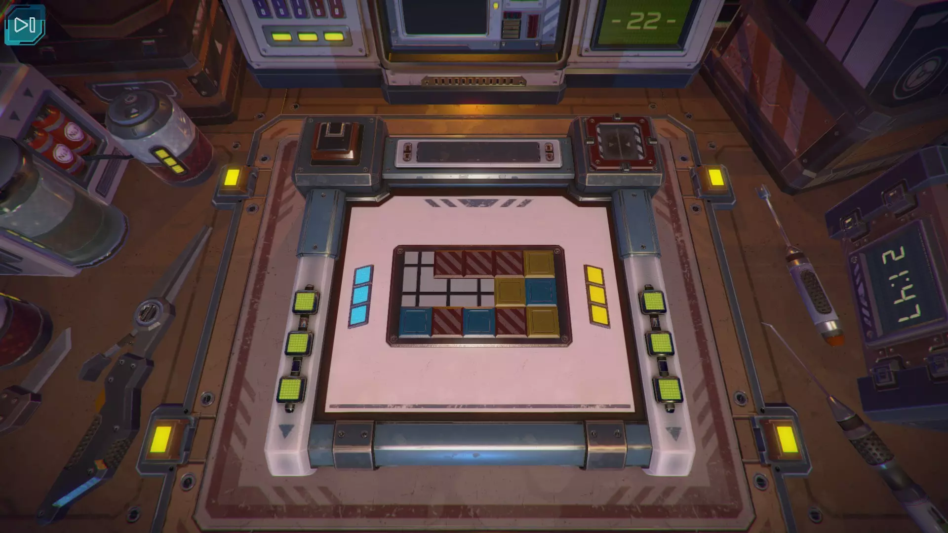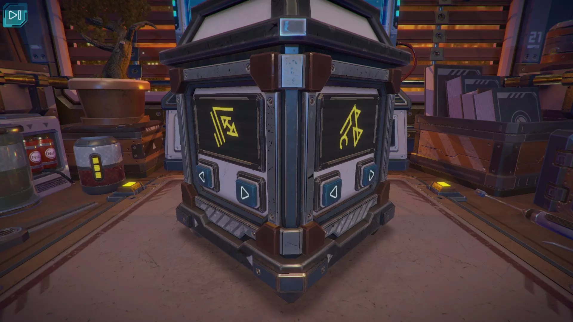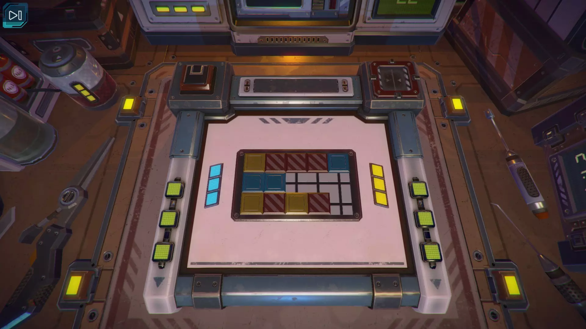 第8关:通过移动显示器边缘的两个紫色滑块,打开箱子后面的路径。