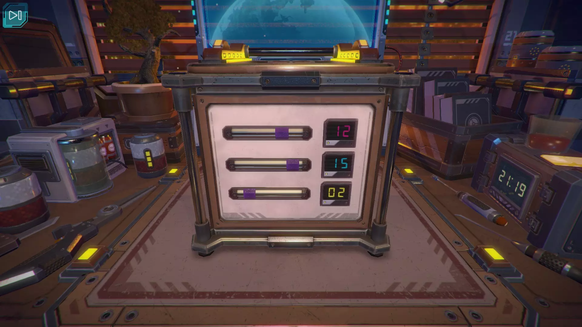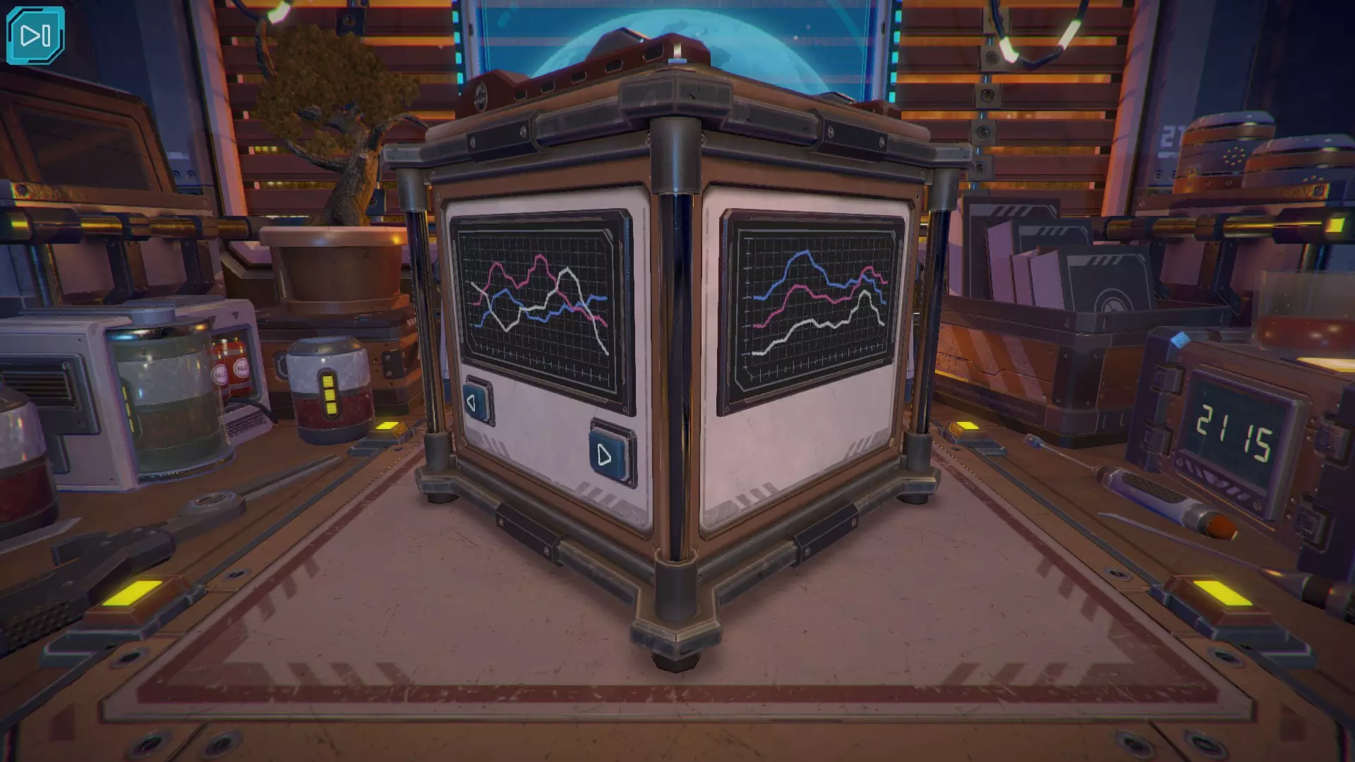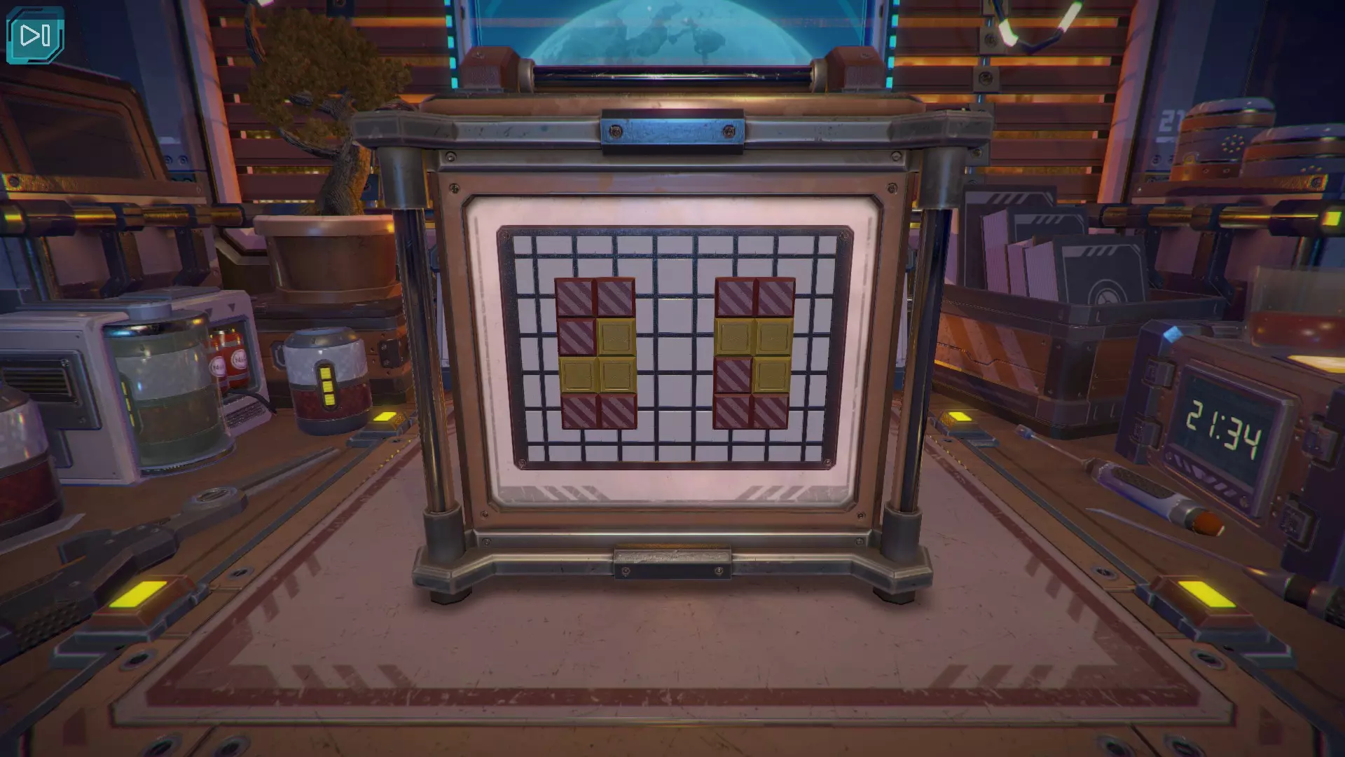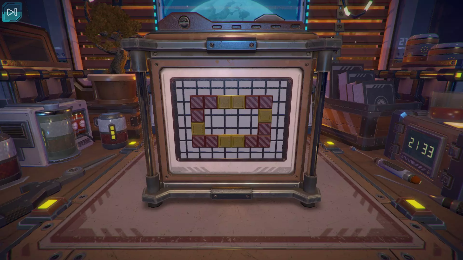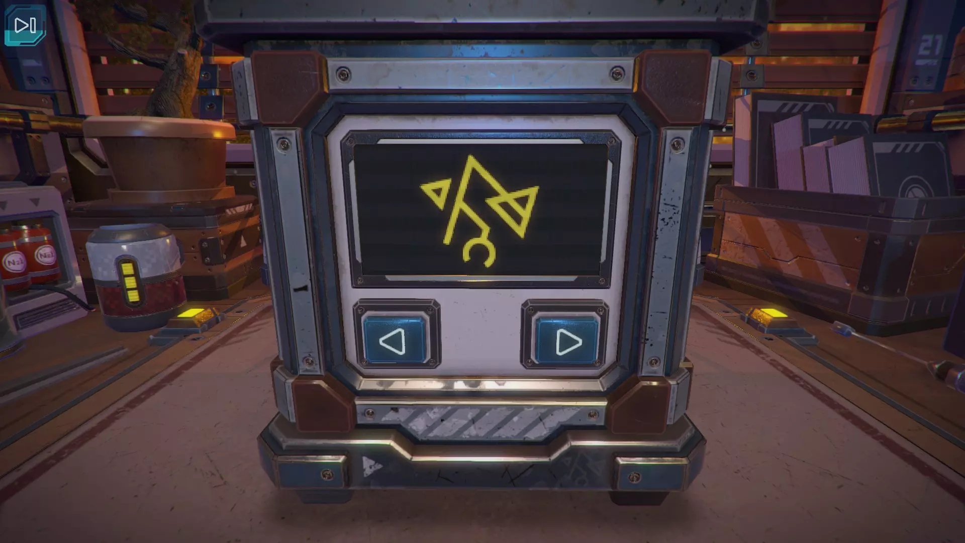 第8关:通过移动显示器边缘的两个紫色滑块,打开箱子后面的路径。