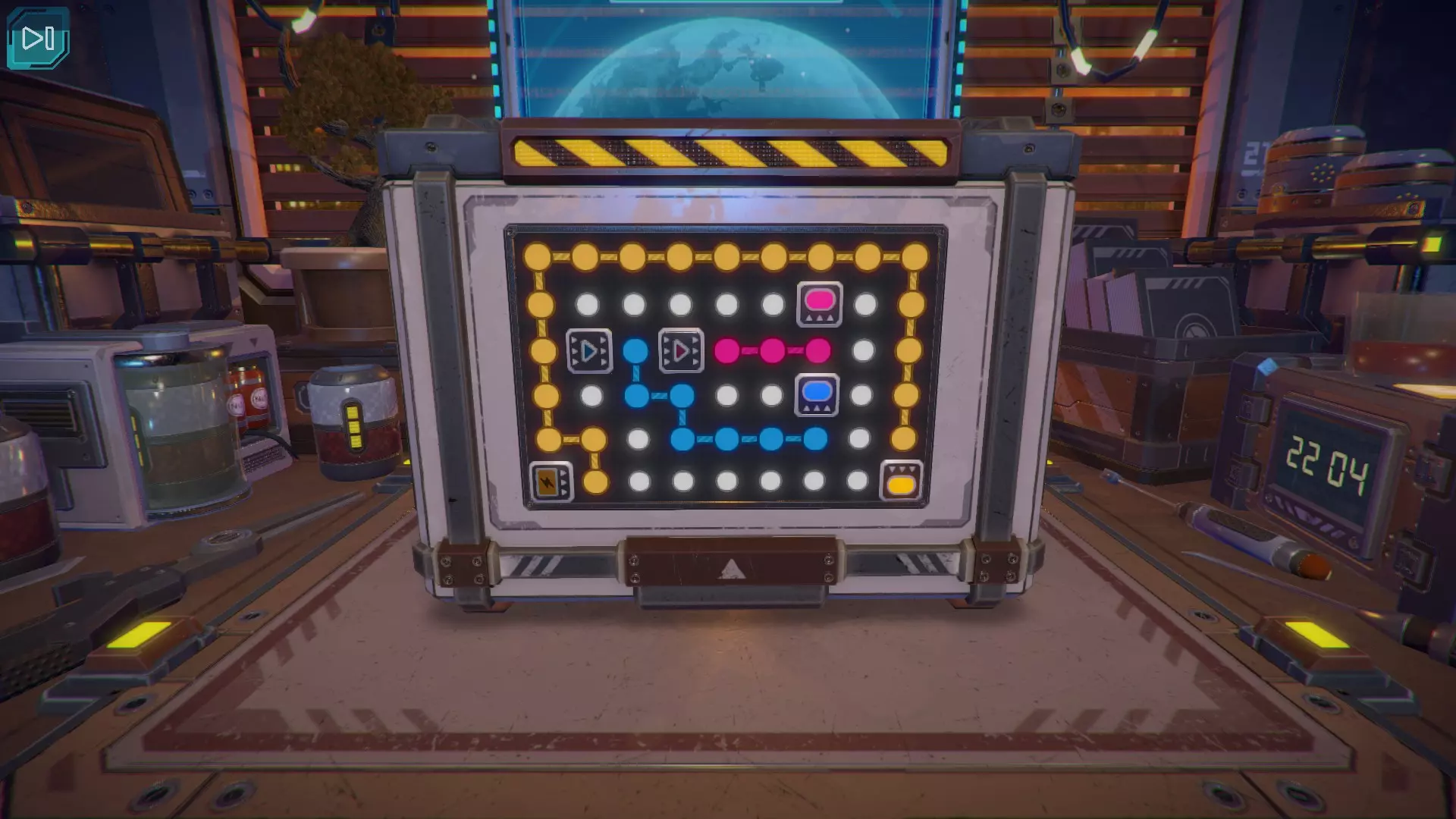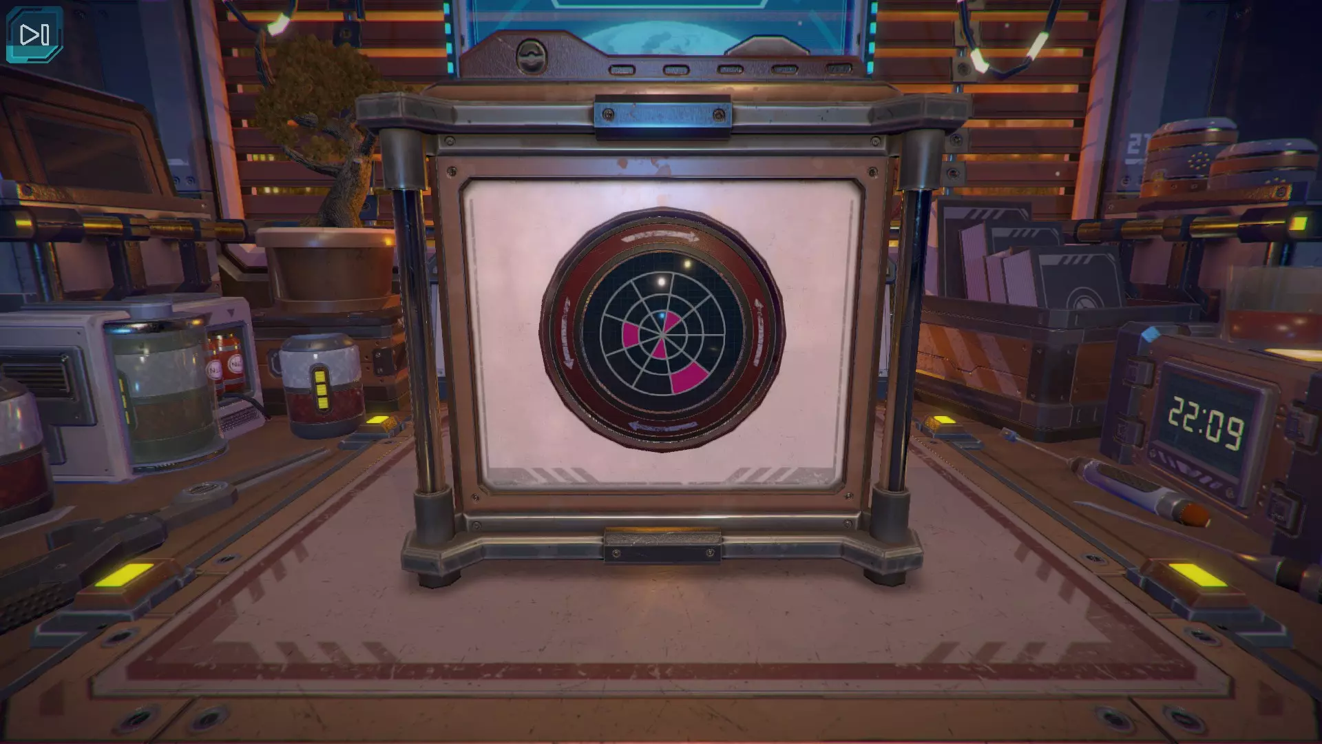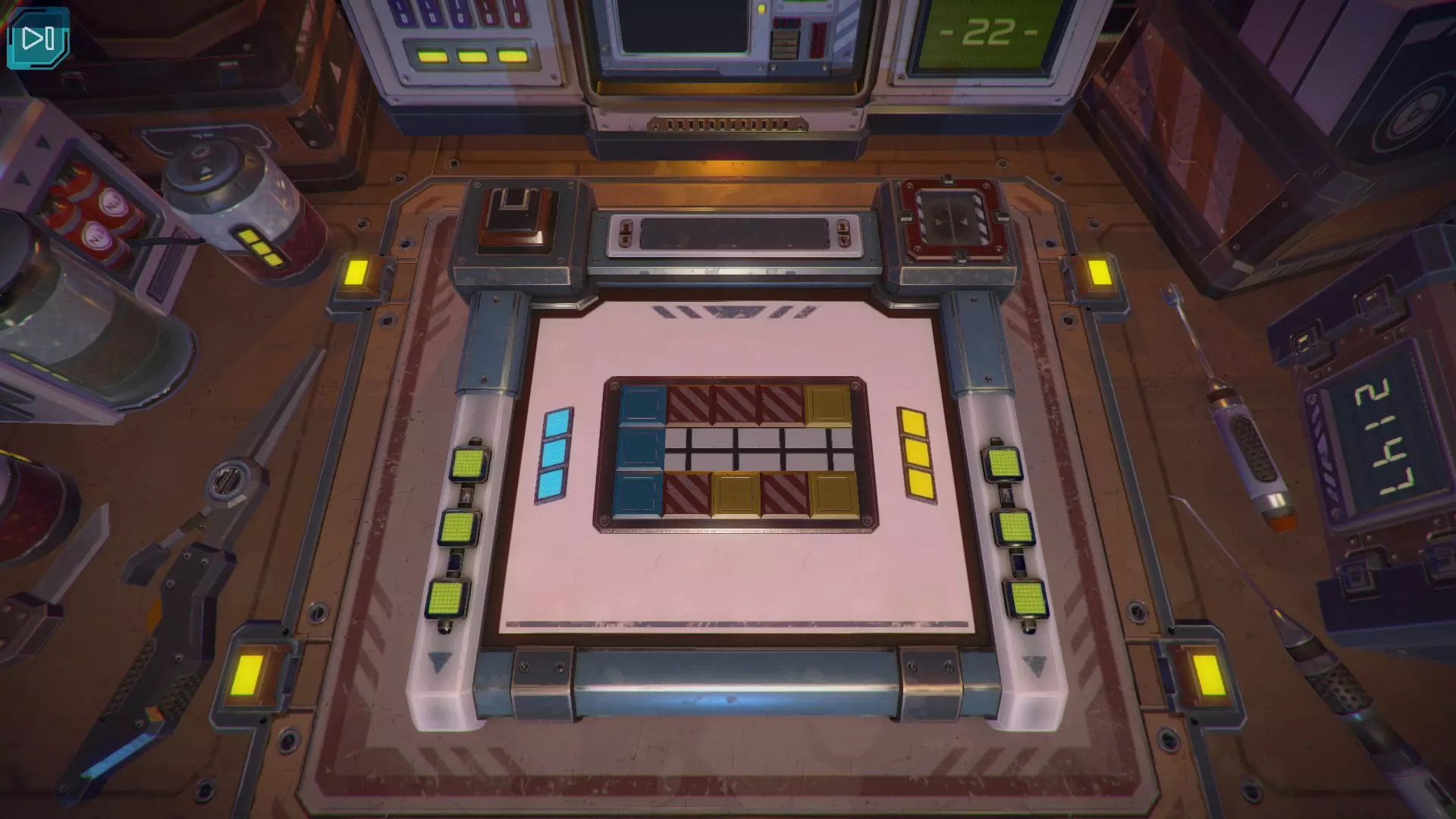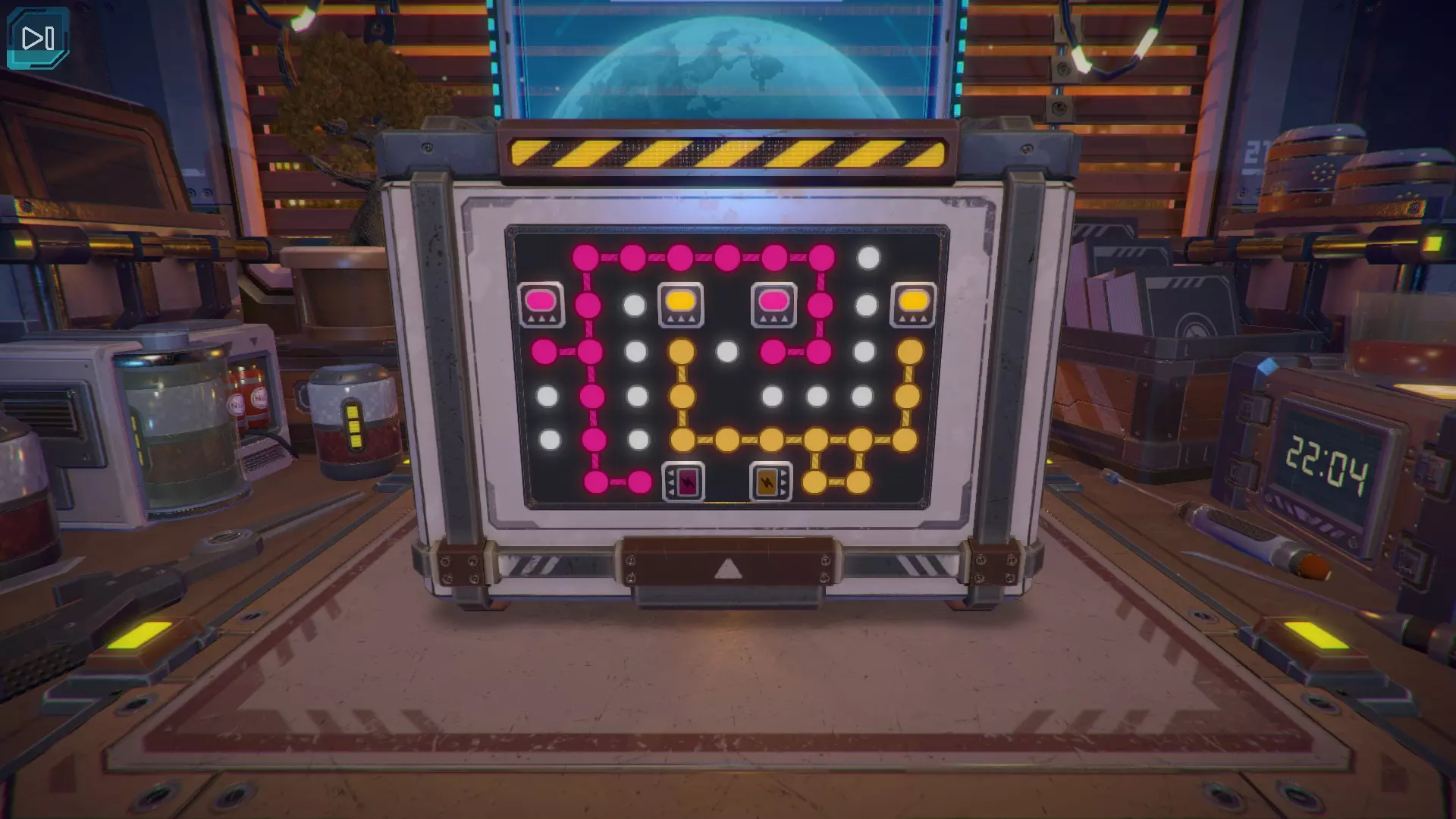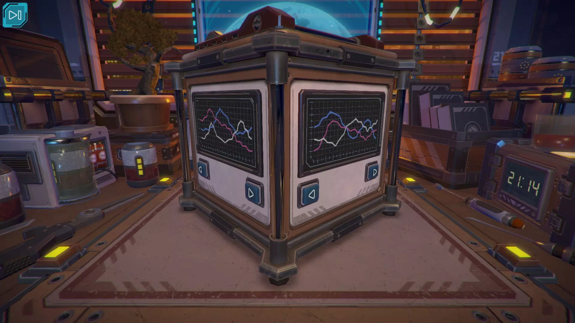 第8关:通过移动显示器边缘的两个紫色滑块,打开箱子后面的路径。