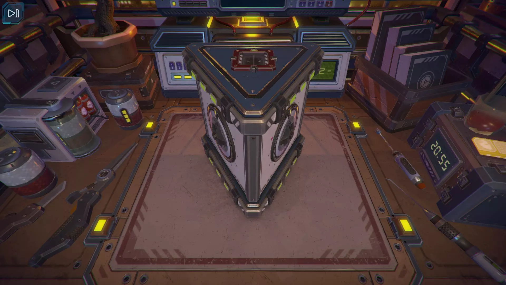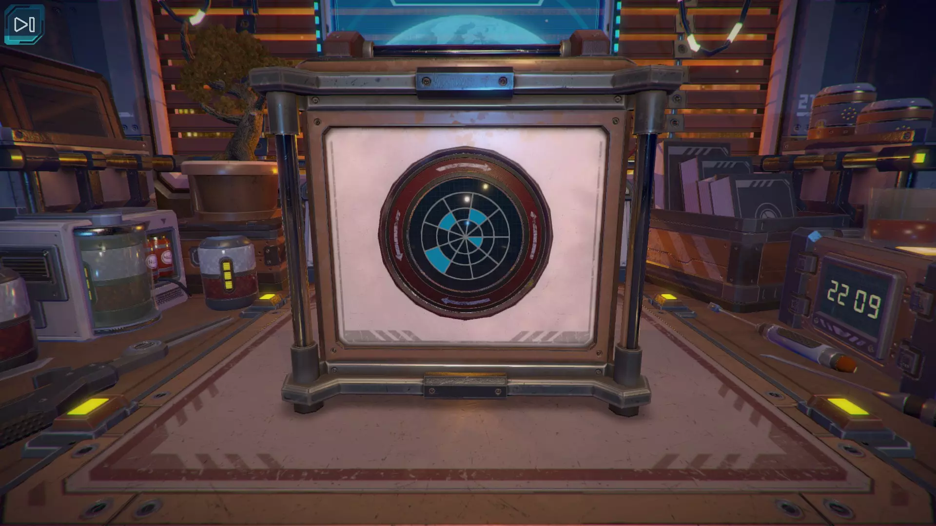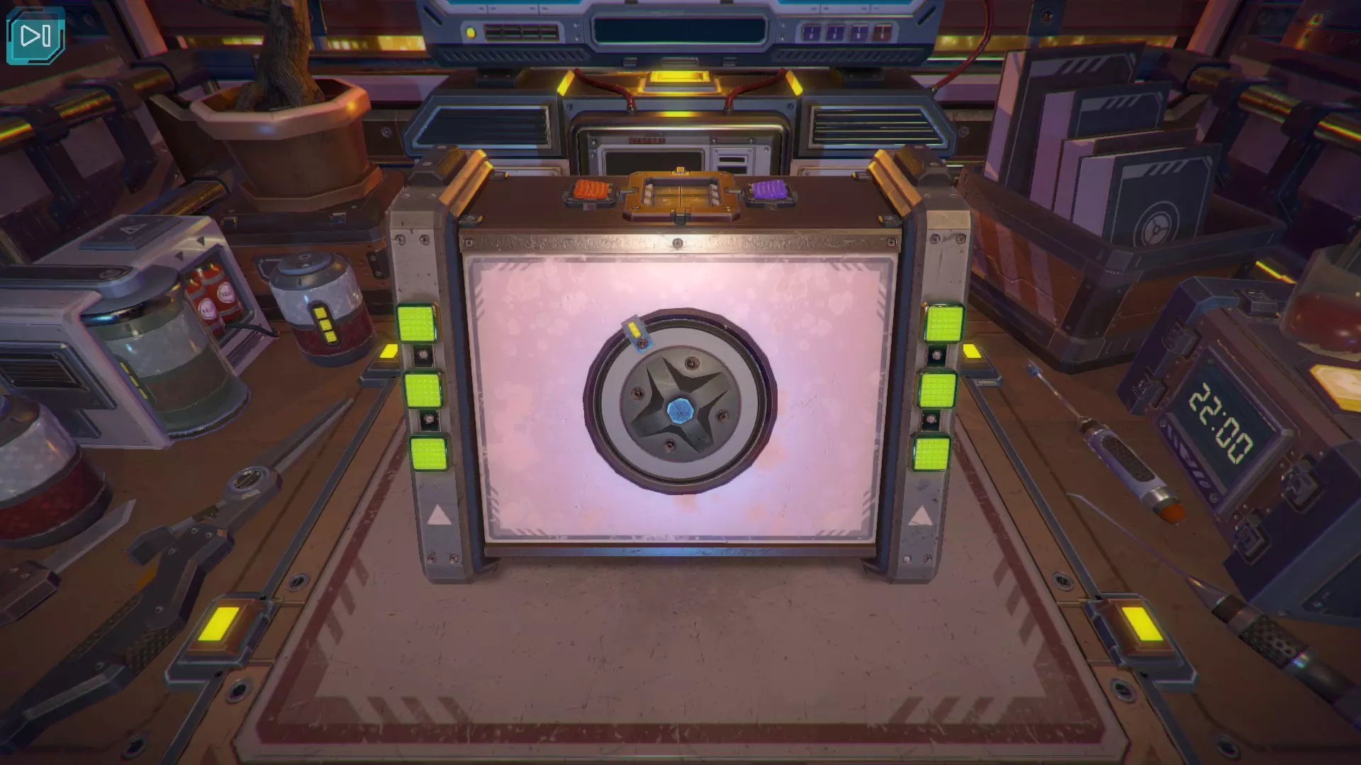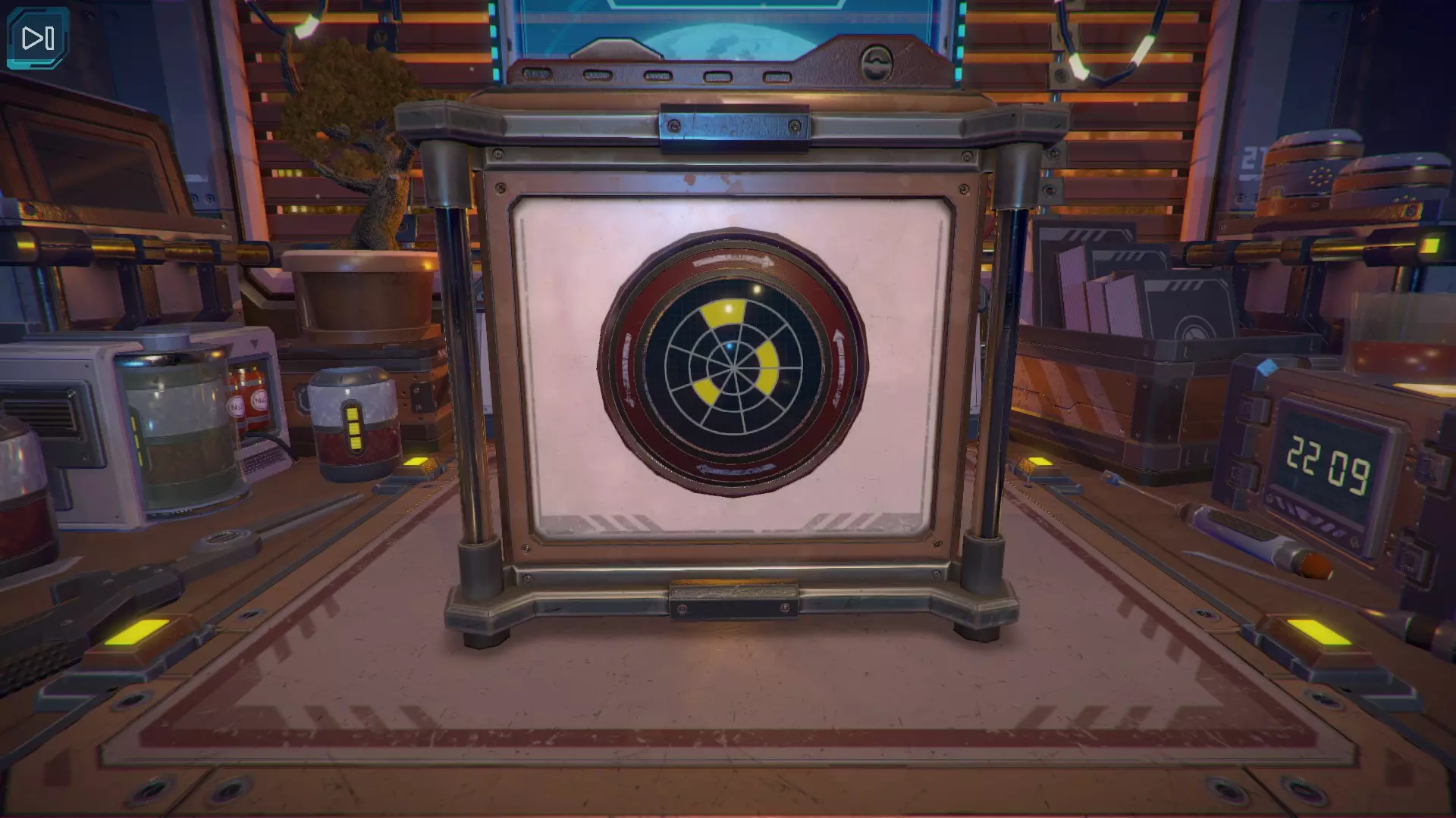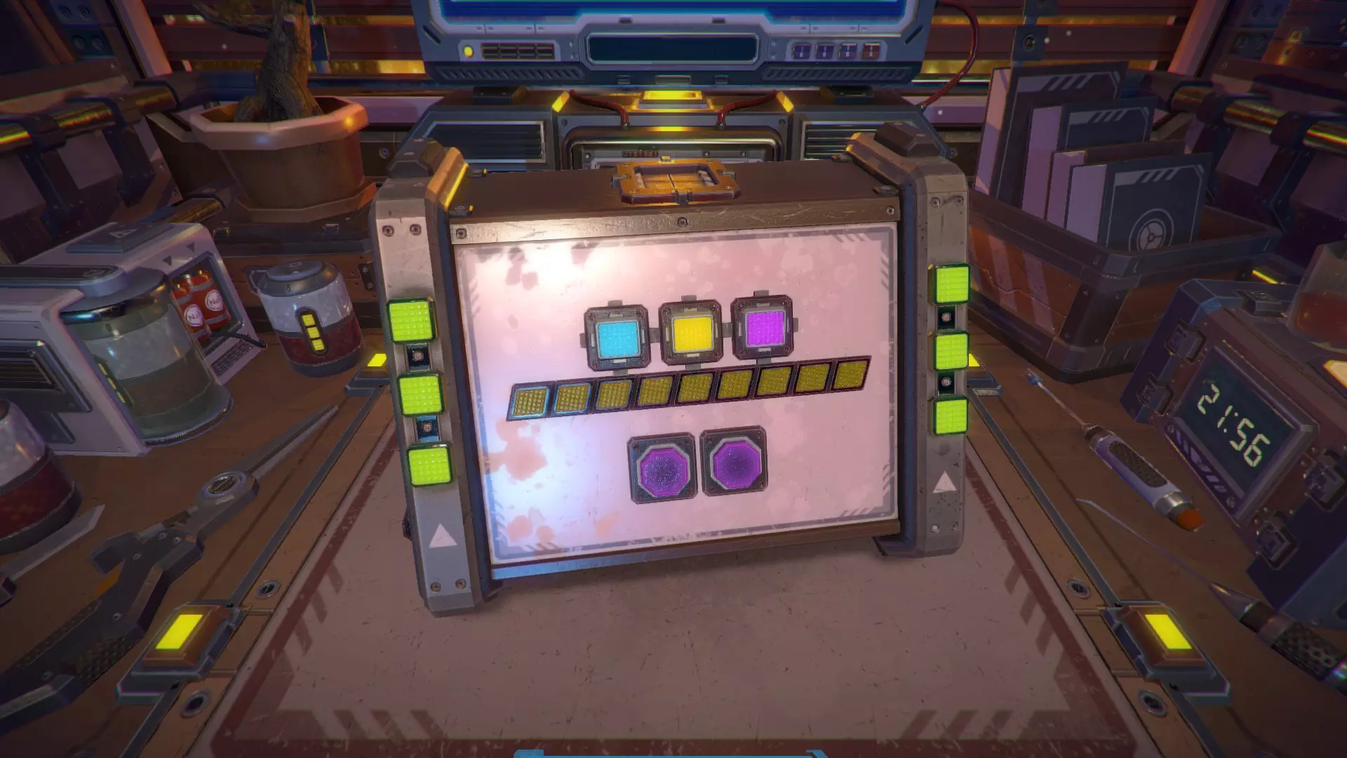 第8关:通过移动显示器边缘的两个紫色滑块,打开箱子后面的路径。