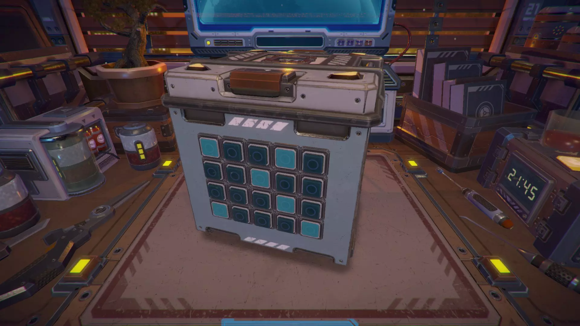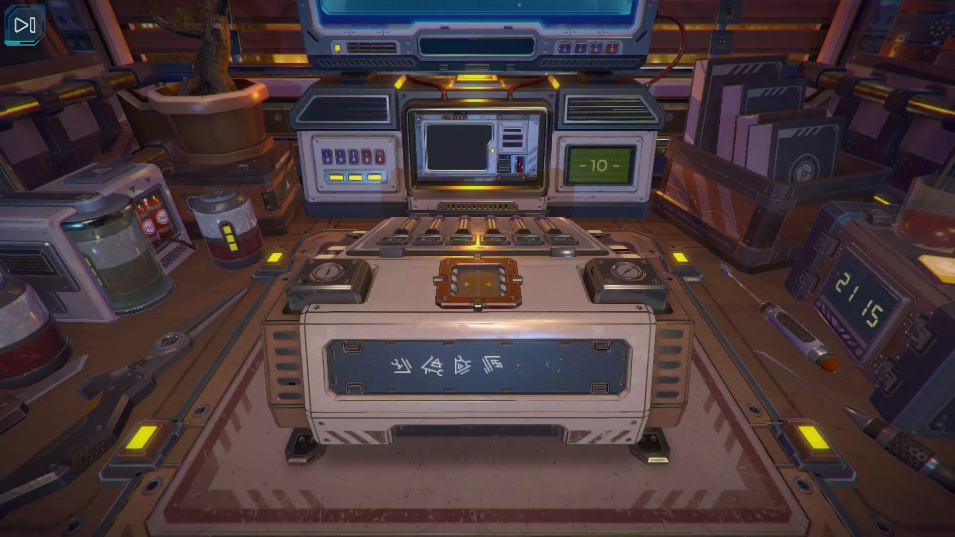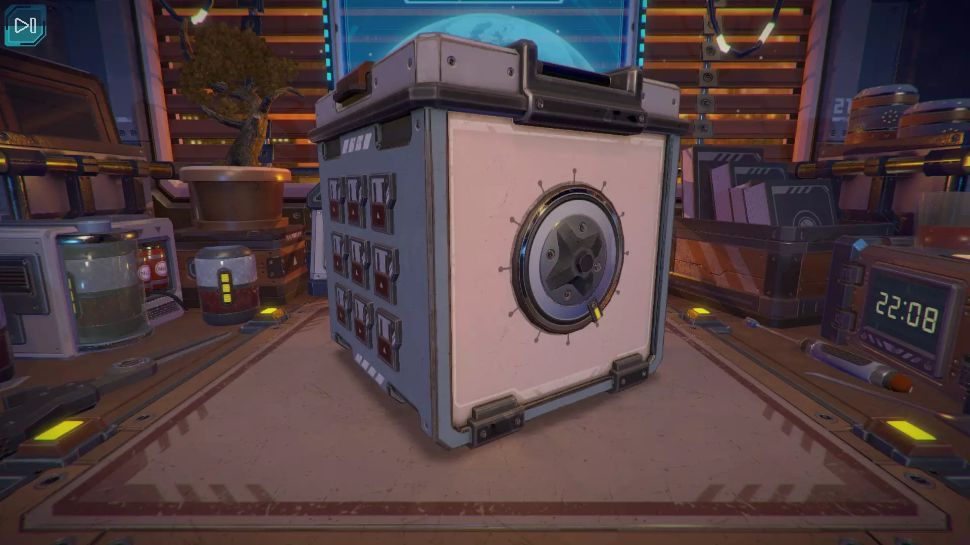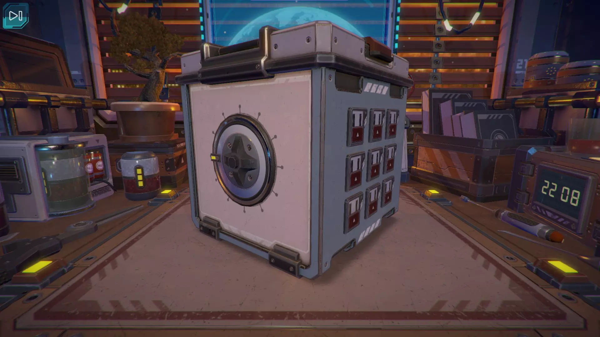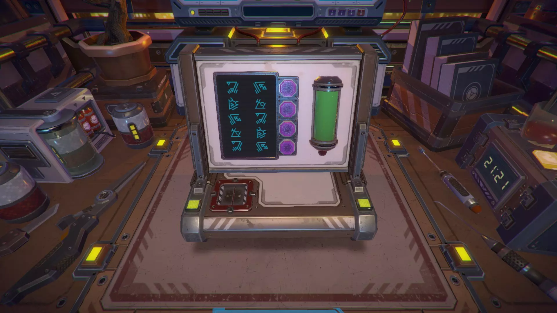 第8关:通过移动显示器边缘的两个紫色滑块,打开箱子后面的路径。