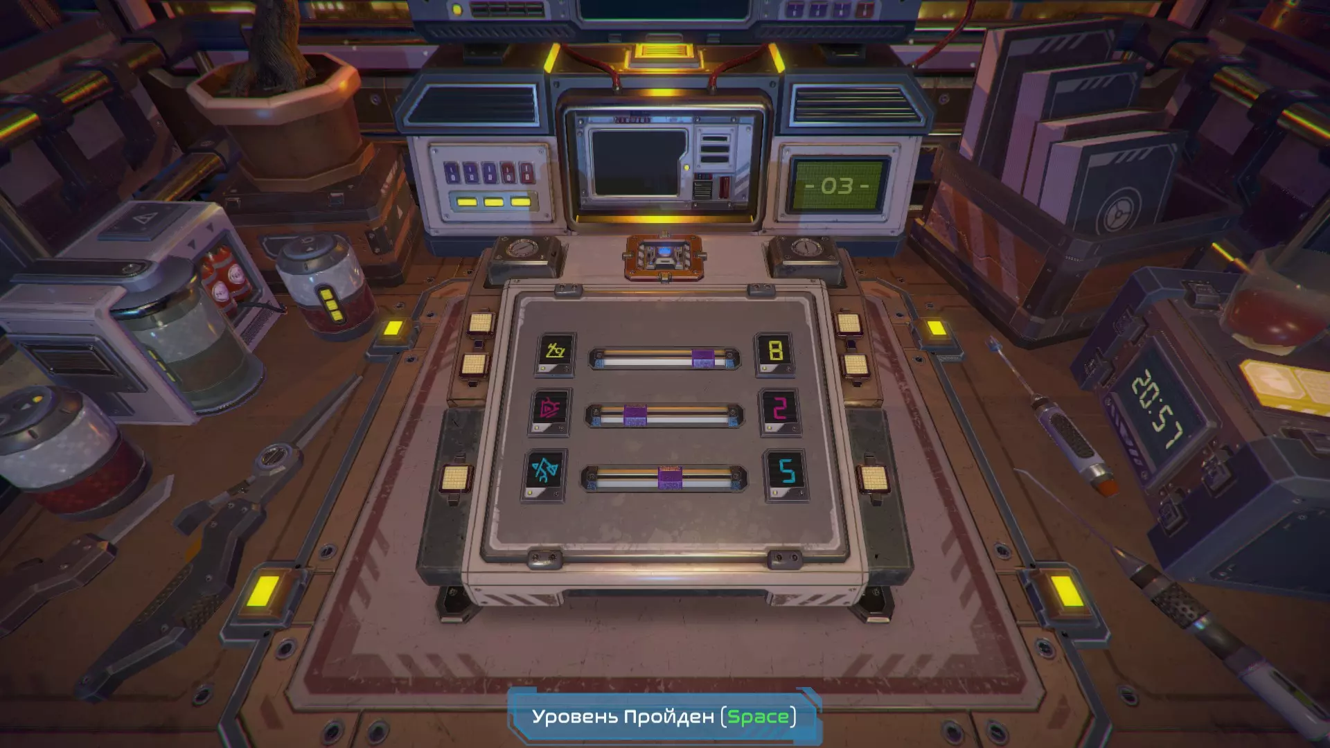 第3关答案在后面的面板上。输入与每个符号对应的数字。从上到下:8,2,5