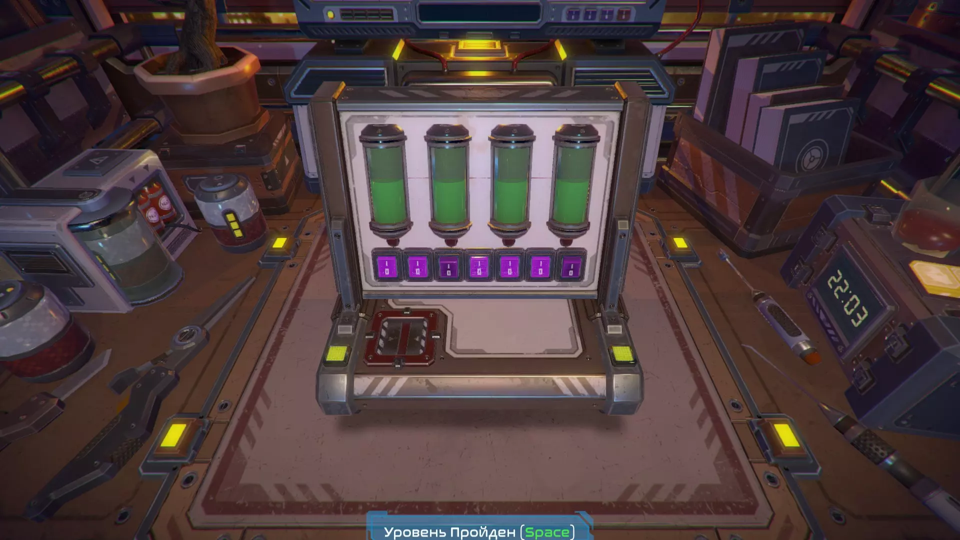 第13关 我们将紫色按钮从上到下依次编号为1、2、3、4。 要填满烧瓶,请按以下顺序点击紫色按钮: 3, 1, 2, 4, 3, 2, 4, 3, 1, 2