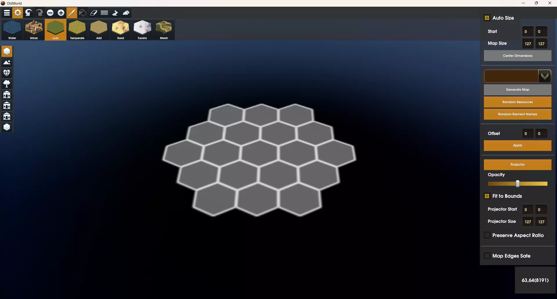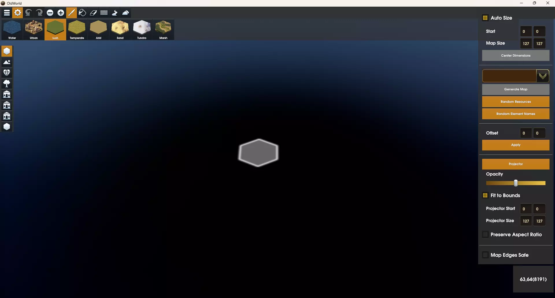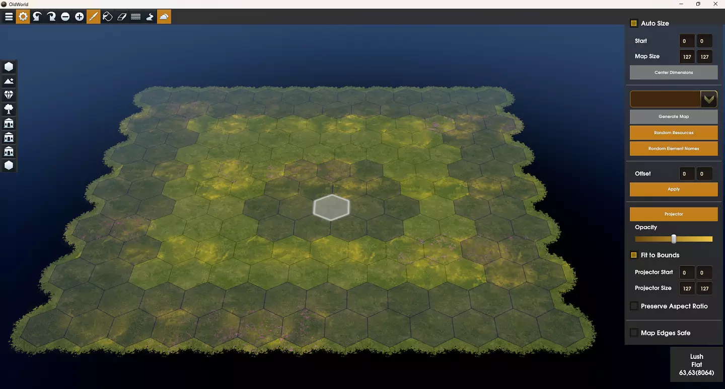 高度 地块的第二重要设置是其高度。默认情况下,当你绘制地形类型时,陆地地块的高度为平坦,水域地块的高度为海岸。对于水域类型的地块,你可以将它们定义为海洋、海岸或湖泊。陆地地块可以定义为平坦、丘陵、山脉或火山。 提示:不要忘记你可以更改光标大小,以帮助快速绘制更大的区域。