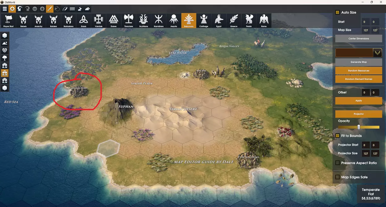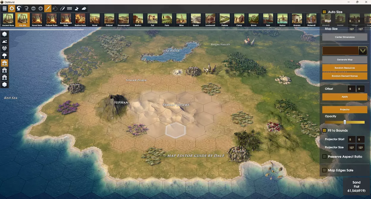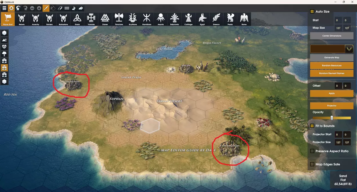 城市地点 城市地点有几种不同的状态,在制作地图时了解每种状态的区别非常重要。 活动城市地点 - 该城市地点是任意国家的起始城市。 活动国家城市地点 - 该城市地点是特定国家的起始城市。 部落城市地点 - 该城市地点属于此部落。 国家城市地点 - 该城市地点属于此国家(与活动国家城市地点不同,这将是AI发展游戏设置选项下的已开发城市地点之一)。 空城市地点 - 该城市地点在地图文件中没有定义用途,游戏将在开始时确定其用途。它最终可能成为AI发展规则下的AI城市、玩家附近的预留自由城市选址,甚至是部落或蛮族营地。 城市选址改良 在地图上定义城市选址的第一步,实际上是在你想要的位置添加城市选址改良。选择改良工具,然后从地格面板中选择城市选址。点击地图上你想要添加城市选址的地格。 提示:如果你放置的城市选址地格没有相邻的城市地格,游戏开始时会自动添加一些随机的城市地格。这是在自定义地图中为城市区域增加一点随机性的好方法。