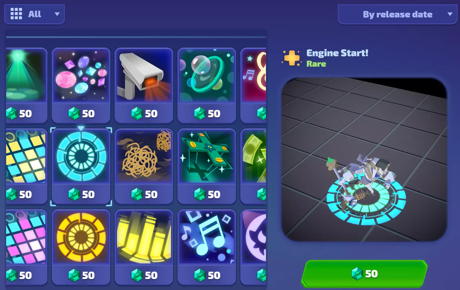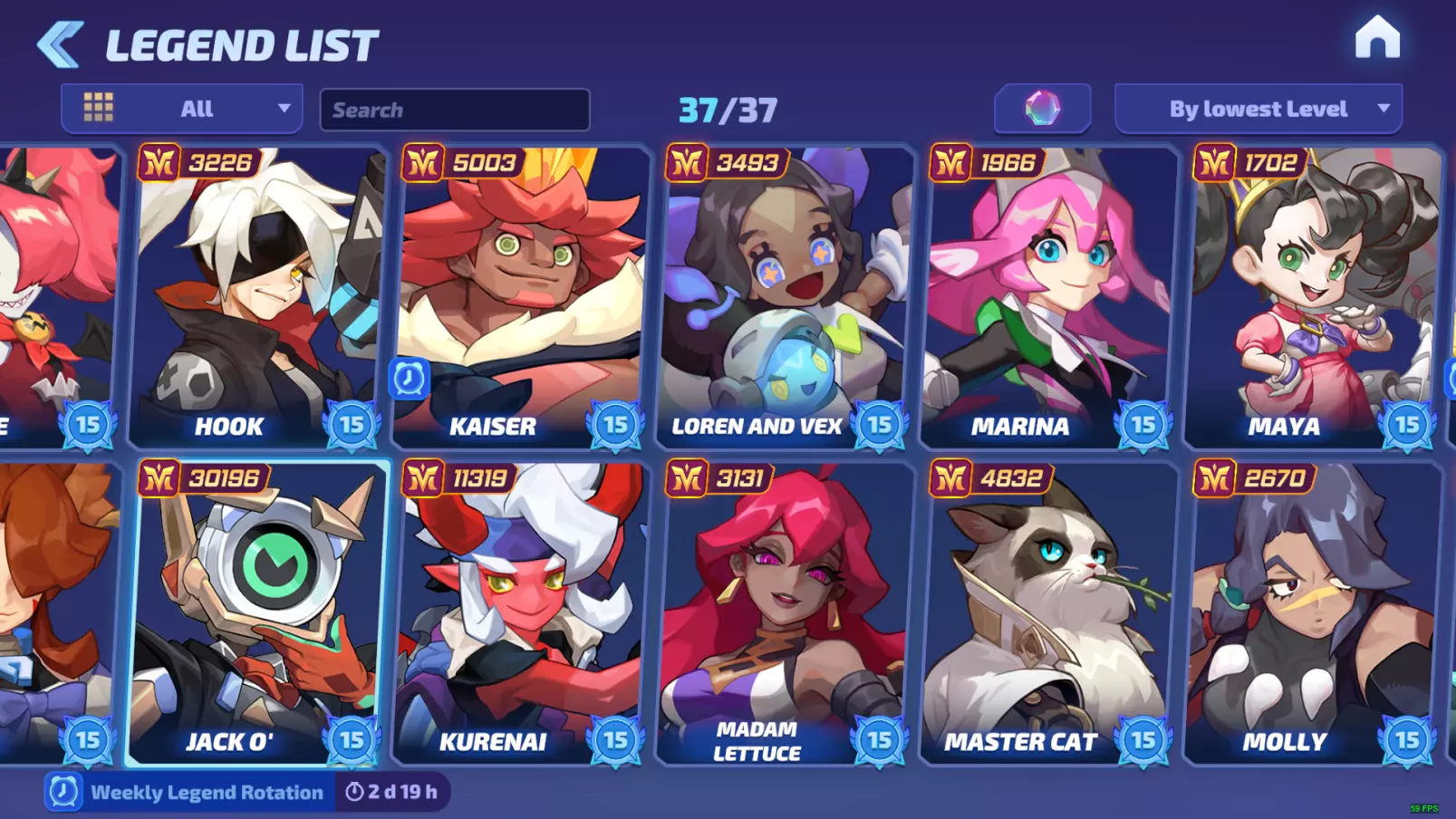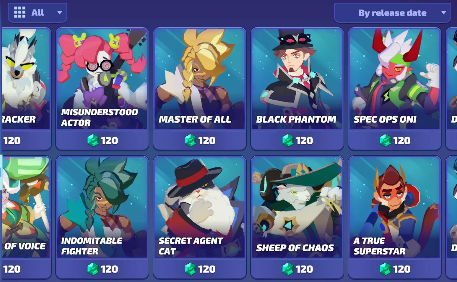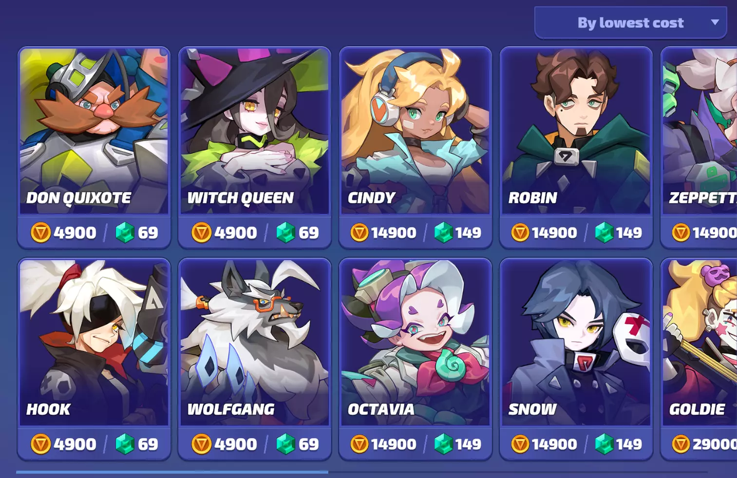 传奇页面可查看所有未拥有的传奇角色,并决定使用【 Credits(游戏币)】或【 Gems(宝石)】购买。你可以按最低价格或发布日期进行筛选。