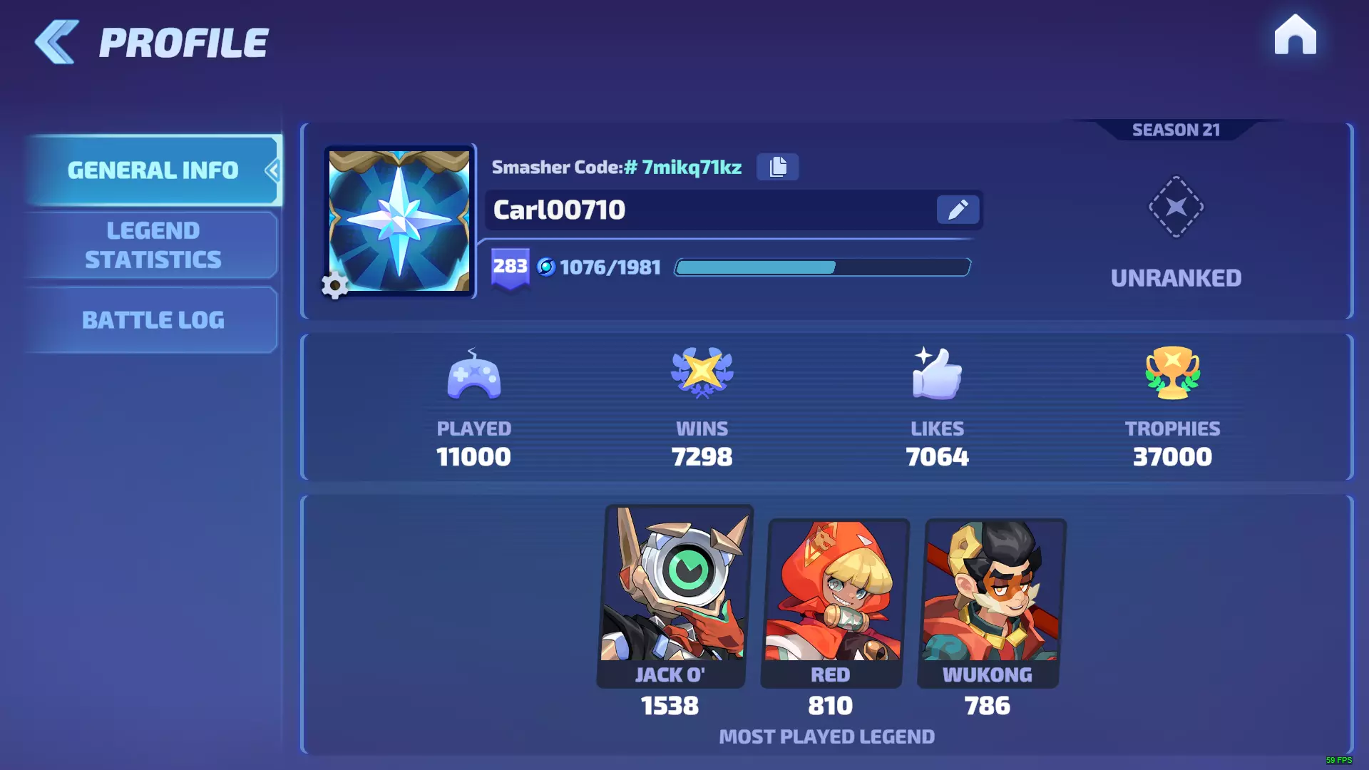 这里会显示详细信息,其中最重要的是你的【粉碎者代码】,它本质上是一个账户标识符。该代码用于发送好友请求、参与【达克】和【罗宾】活动或提交举报。在【传奇统计】中,你可以查看自己在特定模式下的整体表现信息;而【战斗日志】会显示最近的比赛,并提供回放功能。旁边有一个小按钮,可进入【每日竞技比赛奖励】界面,这是每日参与排位赛可获得的奖励,具体奖励根据你的当前段位而定。
