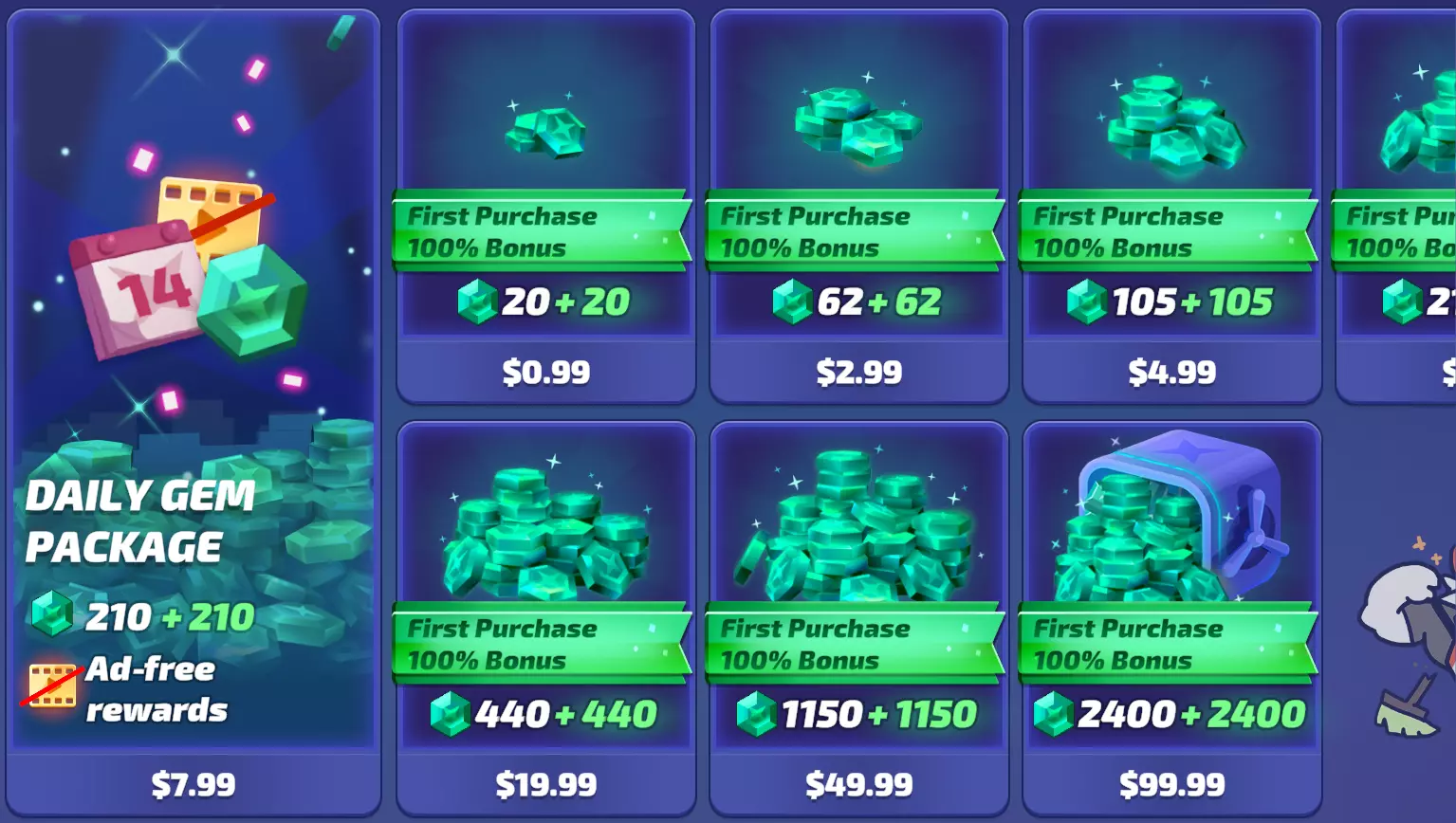 宝石页面是你可以用真实货币购买宝石的地方。游戏还会为你在每个此类优惠中的首次购买提供+100%的额外奖励。