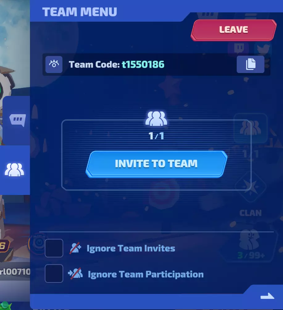 队伍菜单操作十分简单:你可以创建队伍或加入队伍,与其他玩家一同游戏!加入队伍后,会出现聊天按钮,你可以通过该按钮向队友发送消息和表情。菜单底部还有两个按钮:【忽略队伍邀请】和【忽略队伍参与】。前者会关闭接收邀请时的通知,后者则不允许好友直接从你的好友列表加入队伍。