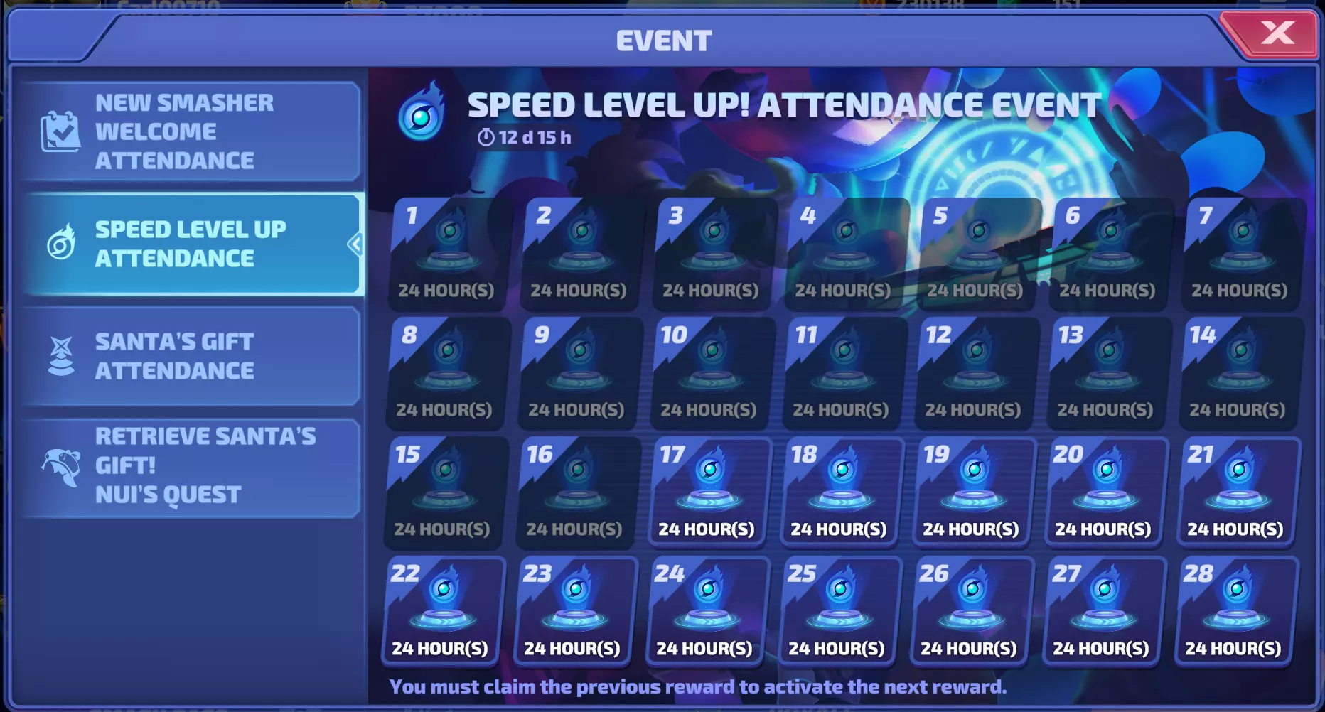 这是签到活动的示例。在这类活动中,你只需每天登录游戏即可领取下一份奖励,非常简单直接。