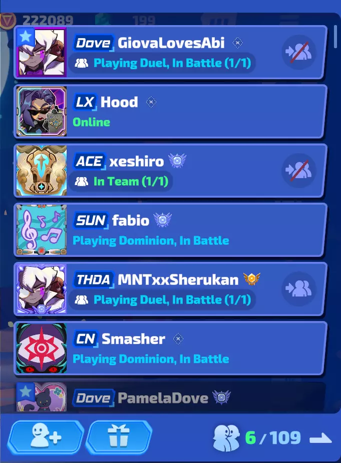 接下来是好友列表功能,它能让你的游戏伙伴始终与你同在,方便一起游玩。发送好友请求的方式有两种:一是在战斗记录中点击其他玩家的头像进行请求,二是使用他们的【Smasher Code】来发送。接受好友请求时,只需点击左下角的“+”图标,然后点击接受即可。 在好友列表旁边,你还能找到【Ducky】活动的入口,并了解其玩法规则,相关信息都在那里! 有了好友后,你可以邀请他们、加入他们的游戏或与他们聊天;还可以将好友置顶,让他们始终显示在列表顶部(就是那个蓝色星形旗帜图标)。 9:其他功能 这里说的是“汉堡菜单”(我喜欢这么称呼它,也就是≡菜单,没明白的人可以这么理解)里的内容。这个菜单包含了很多内容,我会尽力为你进行最全面的总结。