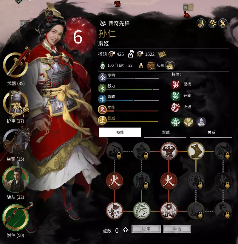 1.如何携带较多军粮出征?看队友都能长途行军,自己走一会儿就缺粮。 2.另外外交方面如何有效结交新盟国?刘表一直不同意结盟。 3.按时间点孙仁应该已经出现,但人物关系表中没有看到,请问在哪里可以找到? 感谢。 一般来说,军粮不会短缺,很少有让军队去“万里长征”的情况。 关于军粮,有三个方面可以提升军队续航能力: 某些建筑可以增加附近军队的补给。 改革中的红色线(军事改革)可以增加补给和移动距离。 如果急需,水系将领技能可以增加补给(前期推荐)。