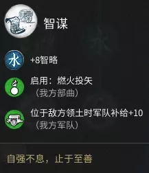 只有这个算前期比较值得的,军队补给+8。 至于水将技能,优先点出【镇静】(火箭、夜战)与【智谋】(投石机爆炸弹丸、军队补给+10)。 外交方面主要看三点: 1. 对方派系的盟友或贸易伙伴等是否与你开战 2. 对方派系与你的外交好感度 3. 目标派系领袖的品质