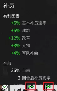 此时则为正在补员,鼠标悬浮后会显示补员速率
