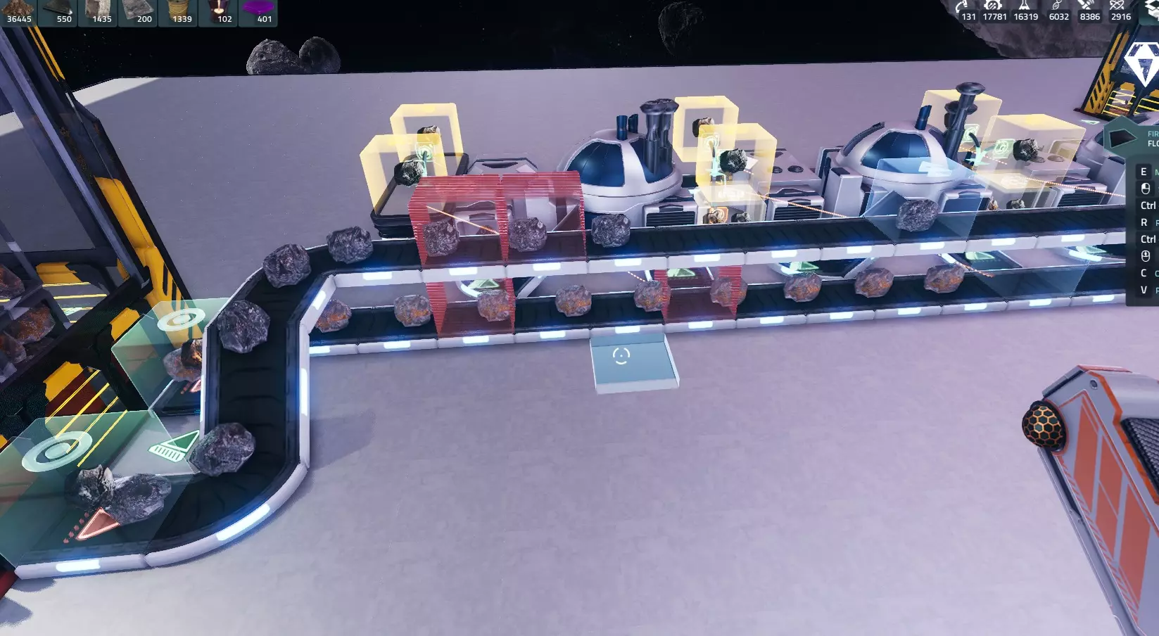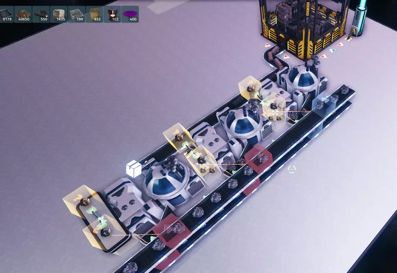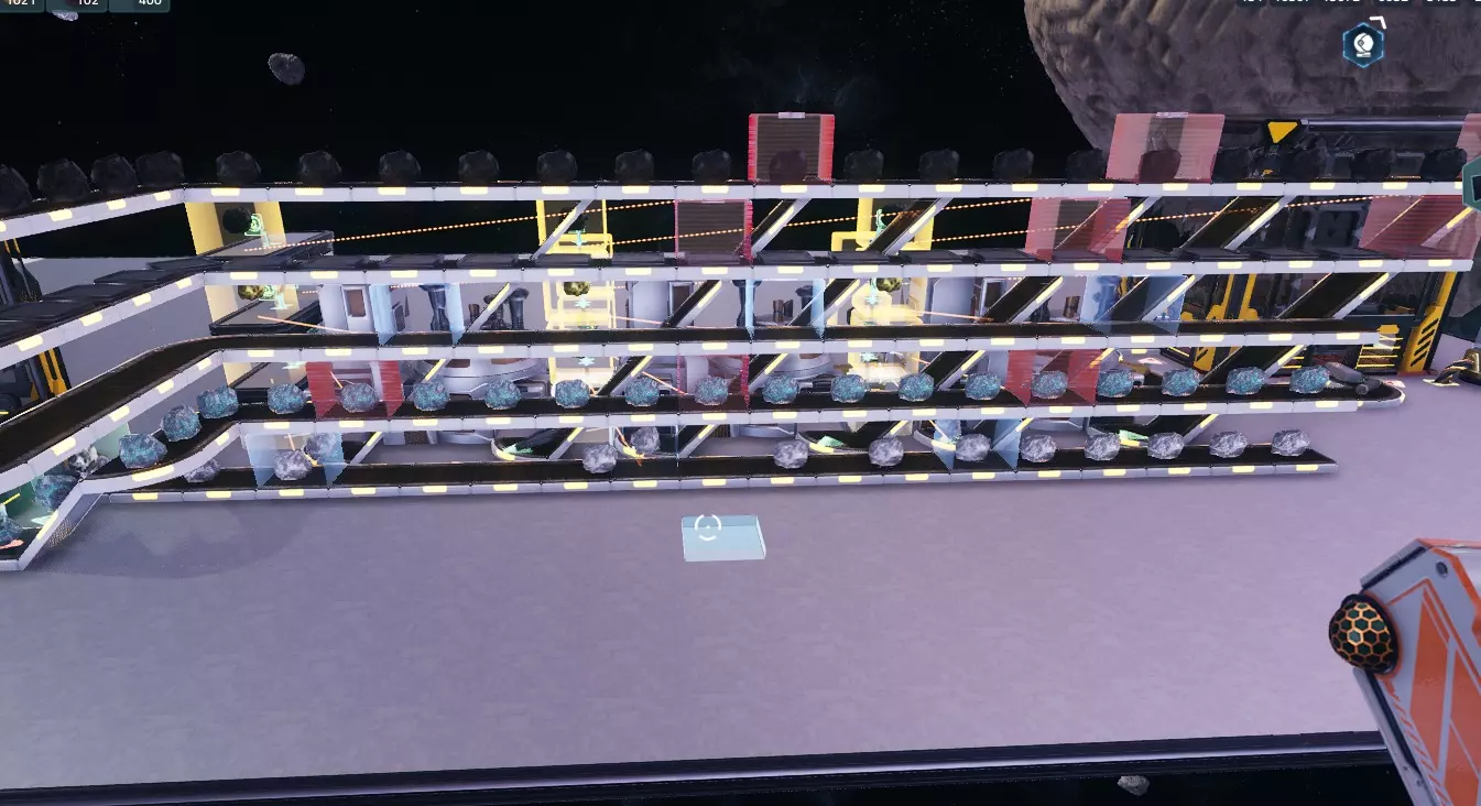 对铜锭执行相同操作,这样就完成了!目前铜锭和铁锭都不会被锁定,因为我们拥有的数量超过了设定值,但如果你消耗了它们,锁定功能就会激活并重新填充存储! 结语: 本指南以冶炼铁和铜为例,但它适用于所有情况,从冶炼到在建造机/制造机中生产更高级的材料,甚至为研究设施供料等。它能让你建造这样一座工厂: - 通过让设备同时处理多种材料,实现最小空间占用 - 可自定义基地存储内的材料数量,确保随时可用 - 通过设定每种材料的生产数量,防止材料溢出和浪费 如果你大量使用小行星捕捉器,接下来可能会遇到一个问题:由于它们会产生副产品,你需要一种处理过剩副产品的方法。 在开发者决定添加垃圾桶或类似功能之前,你可以通过以下方式处理:利用生物科技消耗铜,使用破冰船消耗冰,建造太阳能电池板消耗黄金,以及制造工程科技消耗铁/铜。我发现从星球上采集一些铁和铜来补充制造工程科技所需的铁和铜是最好的办法。希望本指南对你有帮助,祝你在自动化过程中玩得开心!