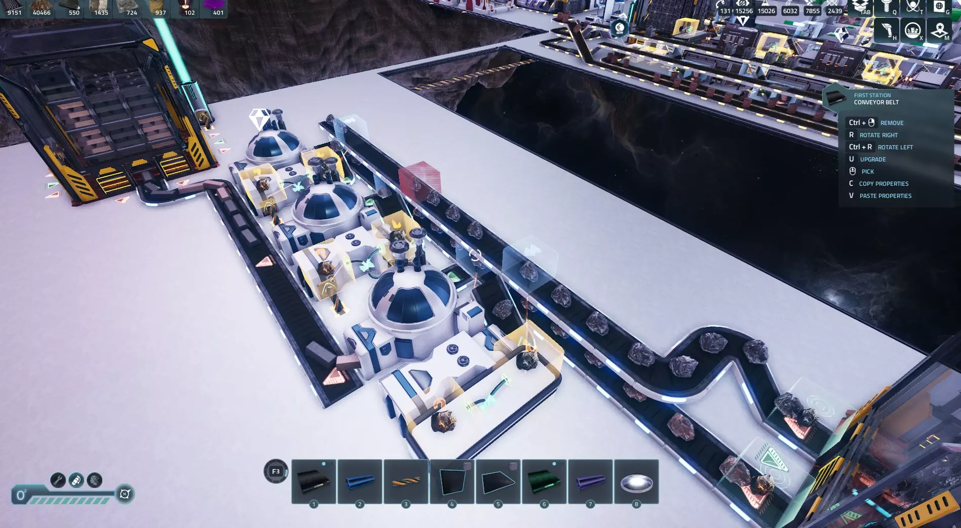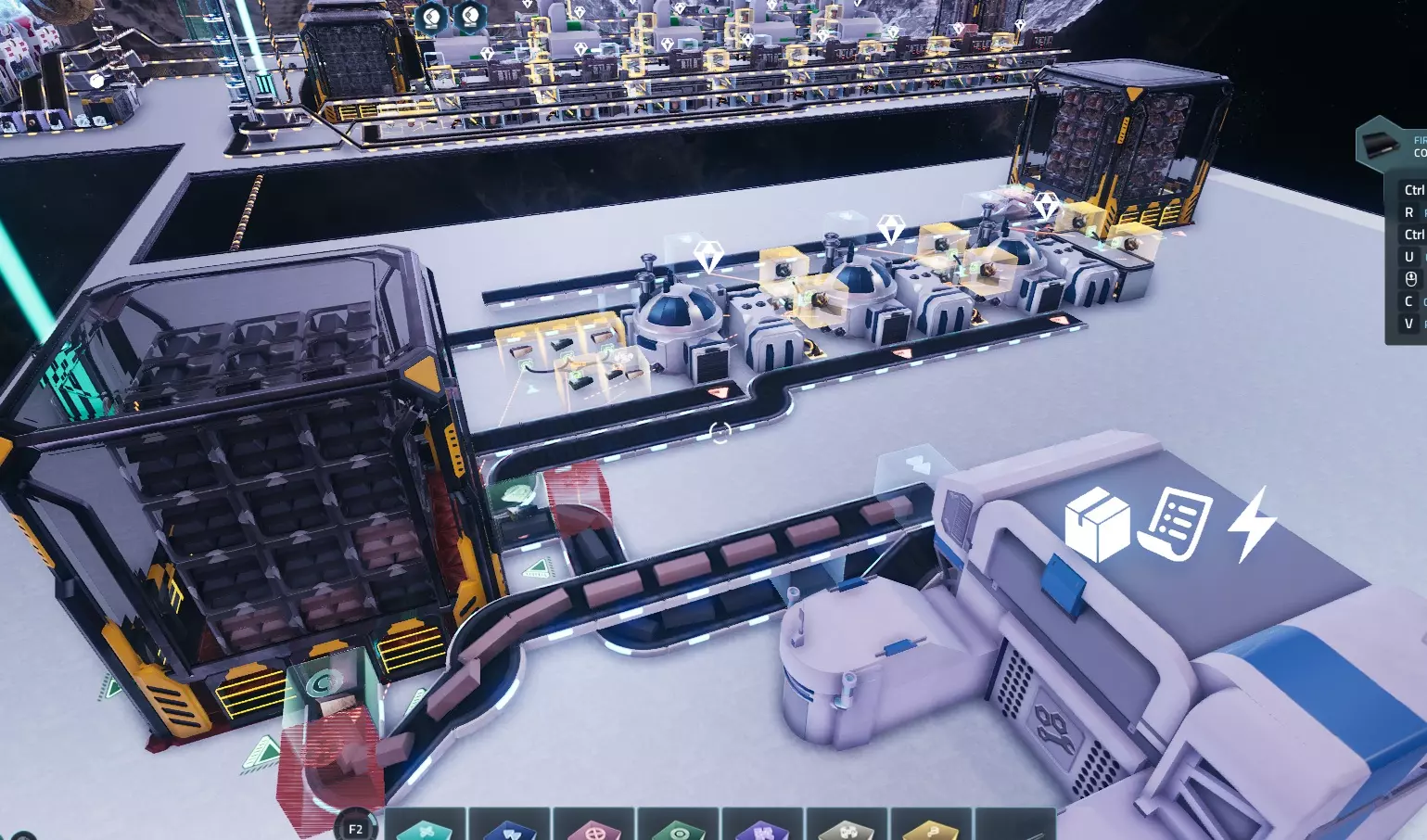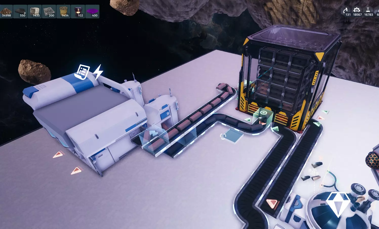 对铜锭执行相同操作,这样就完成了!目前铜锭和铁锭都不会被锁定,因为我们拥有的数量超过了设定值,但如果你消耗了它们,锁定功能就会激活并重新填充存储! 结语: 本指南以冶炼铁和铜为例,但它适用于所有情况,从冶炼到在建造机/制造机中生产更高级的材料,甚至为研究设施供料等。它能让你建造这样一座工厂: - 通过让设备同时处理多种材料,实现最小空间占用 - 可自定义基地存储内的材料数量,确保随时可用 - 通过设定每种材料的生产数量,防止材料溢出和浪费 如果你大量使用小行星捕捉器,接下来可能会遇到一个问题:由于它们会产生副产品,你需要一种处理过剩副产品的方法。 在开发者决定添加垃圾桶或类似功能之前,你可以通过以下方式处理:利用生物科技消耗铜,使用破冰船消耗冰,建造太阳能电池板消耗黄金,以及制造工程科技消耗铁/铜。我发现从星球上采集一些铁和铜来补充制造工程科技所需的铁和铜是最好的办法。希望本指南对你有帮助,祝你在自动化过程中玩得开心!