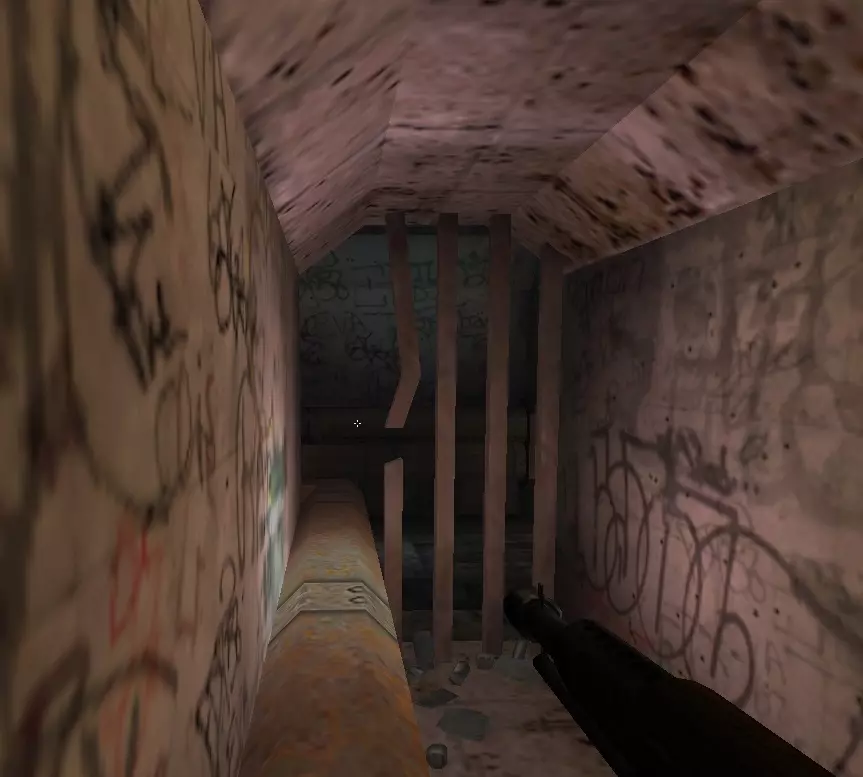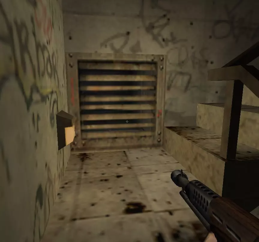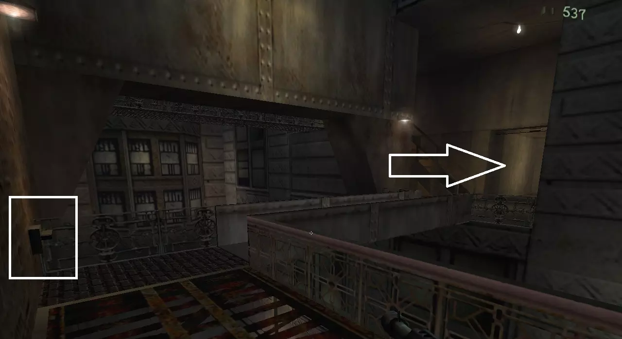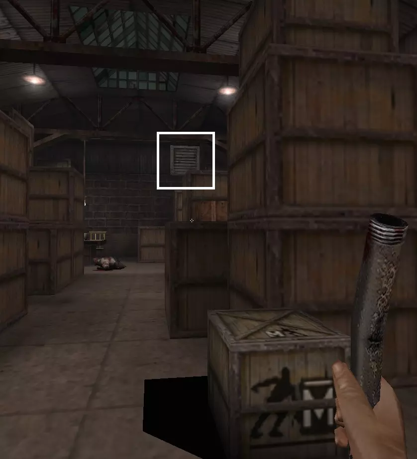继续前进,注意下方侧面的格栅,打破它然后进入。