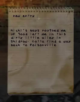 “尼基的人在斯基德罗的一条黑暗小巷里揍了我” “我得另找一条去毒镇的路” 物品栏菜单