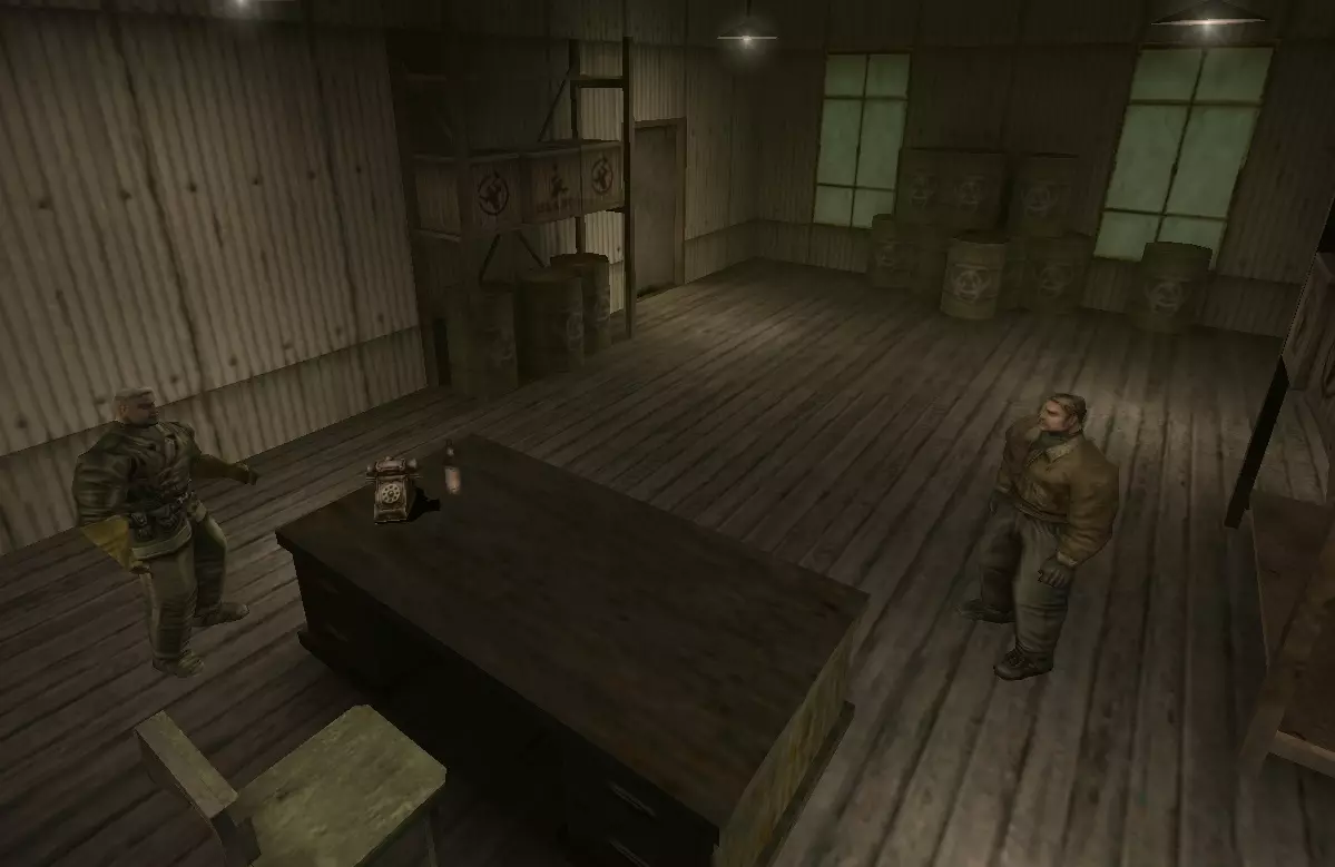 继续探索,找到一个有两名敌人看守的办公室,获取钥匙。