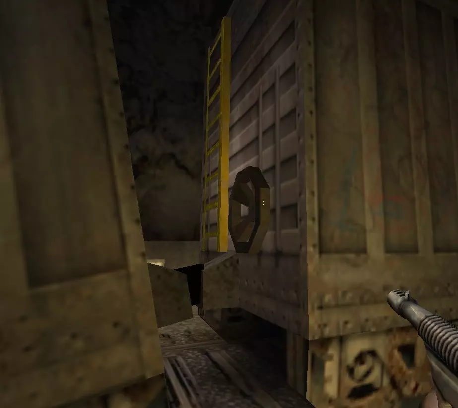 沿着隧道前进,注意火车,消灭遇到的敌人,然后在尽头向左跳入水中。