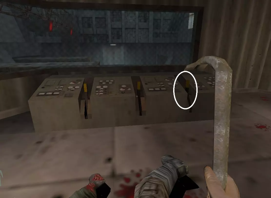 进入下水道,在第一个梯子处,操作杠杆后向上爬,获取武器。