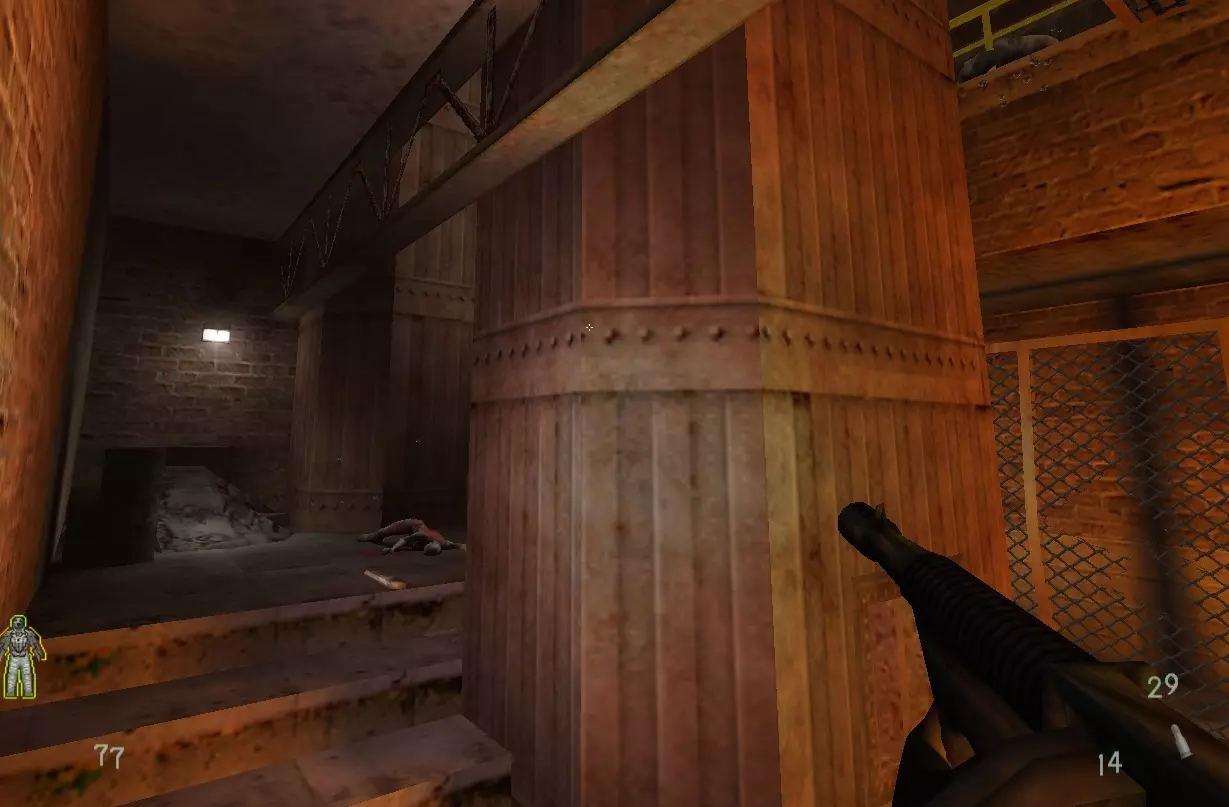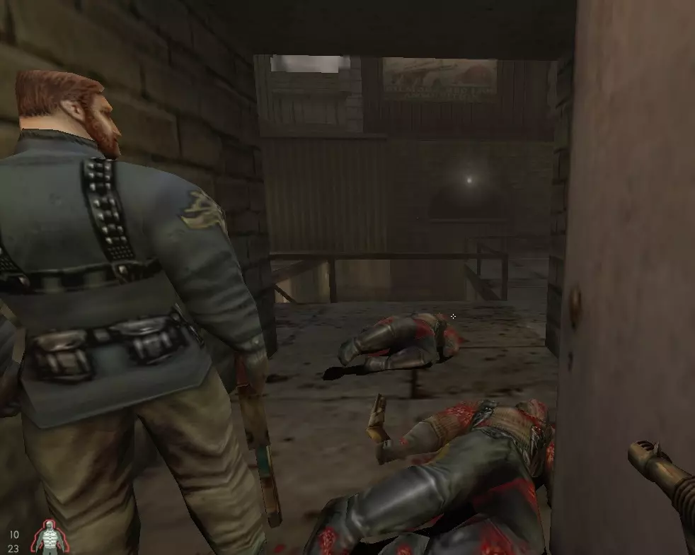 穿过另一道栅栏,杀死藏身处房间里的敌人