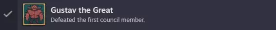 选择第三、第四和第五个选项,如果你之前已经和他交谈过,可以跳过那些已经涉及的内容。我们已确定下一个目的地。 废品场 向上走以触发一些场景。 战斗:攻击两次,然后防御一次。 当你独自一人时, boss 会遵循以下攻击模式:单次攻击、双重攻击和特殊攻击。至少要在特殊攻击时进行防御。 当 boss 的生命值降至约50%时,你需要快速点击按钮来获胜并造成额外伤害。 之后,继续留意他之前的攻击模式,并且当他“积蓄力量”时也要进行防御,每当出现提示时再次进行小游戏。 获胜后将解锁【GUSTAV THE GREAT】成就。