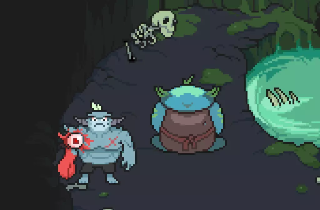 退出到地图,然后再次选择【???】以完成下一个子事件。向上走并与怪物对话获取肉,现在我们两种食材都有了!