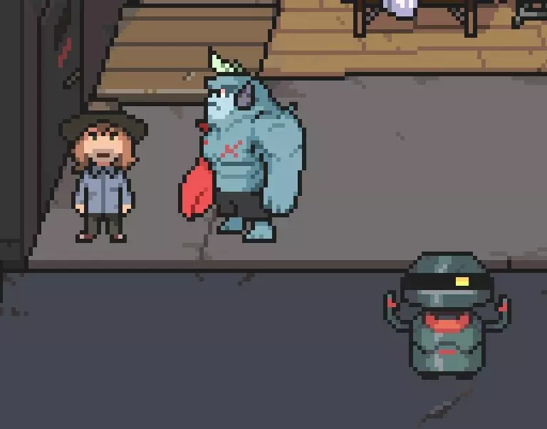 离开房子以触发更多场景并推进时间。 重新获得控制权后,选择返回保罗家,这样我们就能开始另一个支线事件。 保罗家 进入屋内并与机器人对话,开始寻找“汉堡”的食材。 我们去村庄找一份食材吧。 怪物村 与第一个店主交谈。