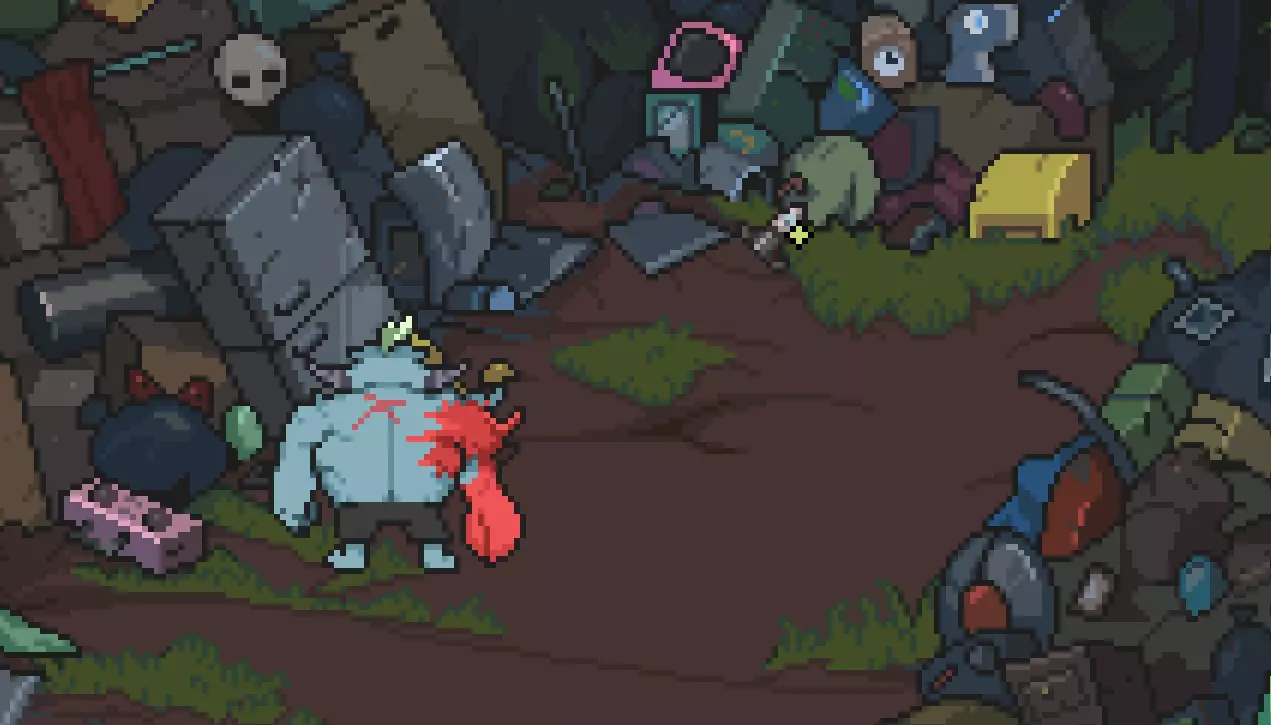 离开房子。 战斗:再次使用攻击即可。 向下走触发剧情,然后前往废料场。 废料场 调查两个闪光的地方,会有东西从天而降。