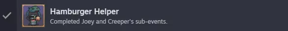 我们去把东西交了吧。 保罗的家 进去把东西送了,过场动画后我们会回到地图,马上用汉堡来遵守承诺。 爬行者领域 上去和怪物对话,这会解锁【HAMBURGER HELPER】成就。