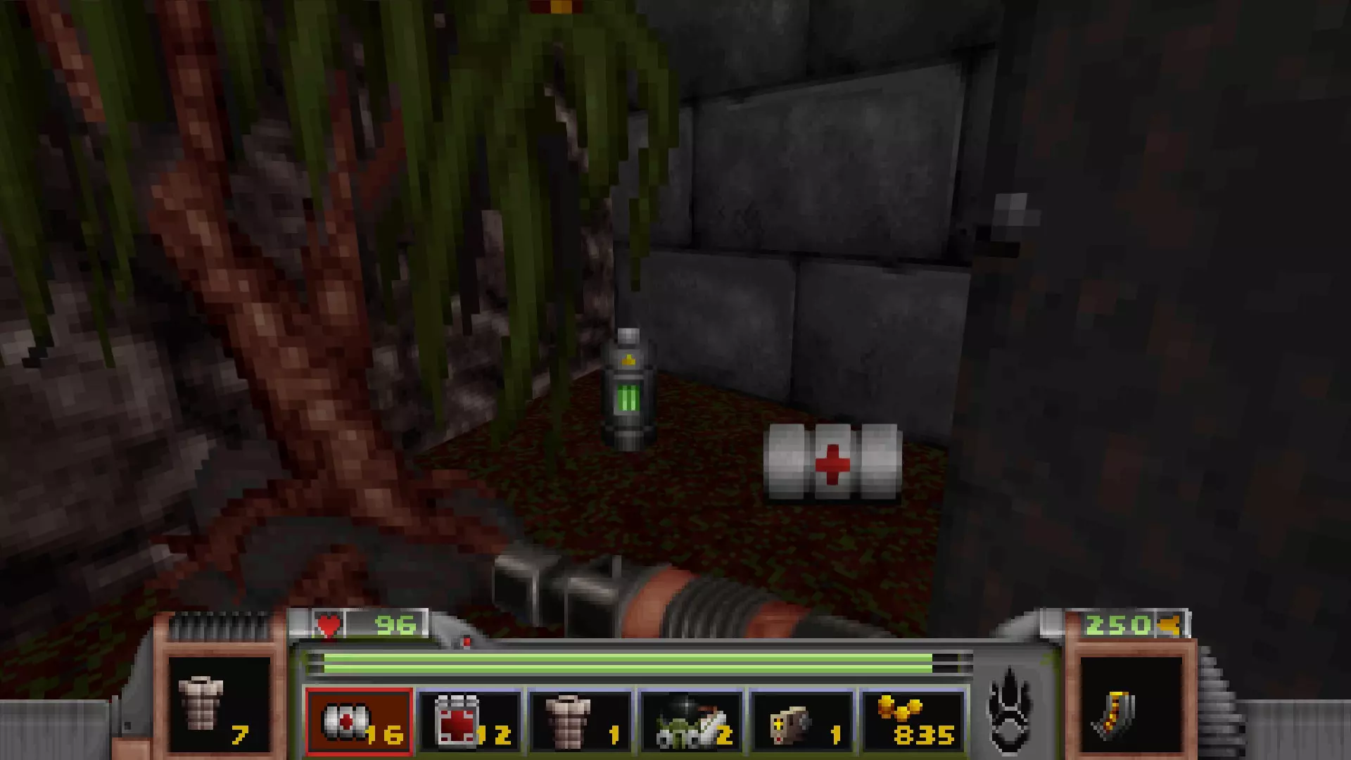 右侧同样有一棵树和一些物品。 右侧秘密区域包含的物品:医疗包×2 秘密3:隐藏通道