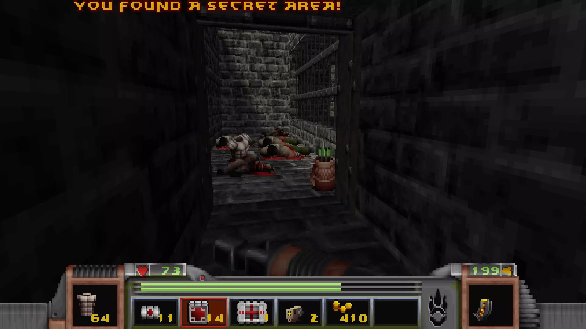 秘密中包含的物品: 弹药 25金币 区域3:监狱(3/16) 监狱有许多小房间通过众多走廊相连,但该关卡几乎没有秘密。不过,有一个秘密计入【Completionist】成就。 秘密3:祭坛秘密(【Completionist】3/16)
