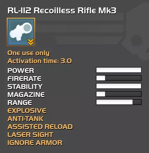请注意,如果潜水员的生命值正在快速恢复,请勿执行此操作,这意味着该玩家正在使用MD-99注射器,他们的生命值在受到伤害后几乎会立即开始恢复,并且他们能够比未使用注射器的玩家快得多地自行起身。 生命值完全恢复大约需要36秒,而注射器将这一时间缩短到仅6秒。 伸出援手——一枚火箭——一束希望 教程并非包罗万象,因此你可能不知道某些武器受益于“辅助装填”——即一次性发射的火箭发射器——RL-112无后坐力步枪和MLS-4X突击队火箭筒。