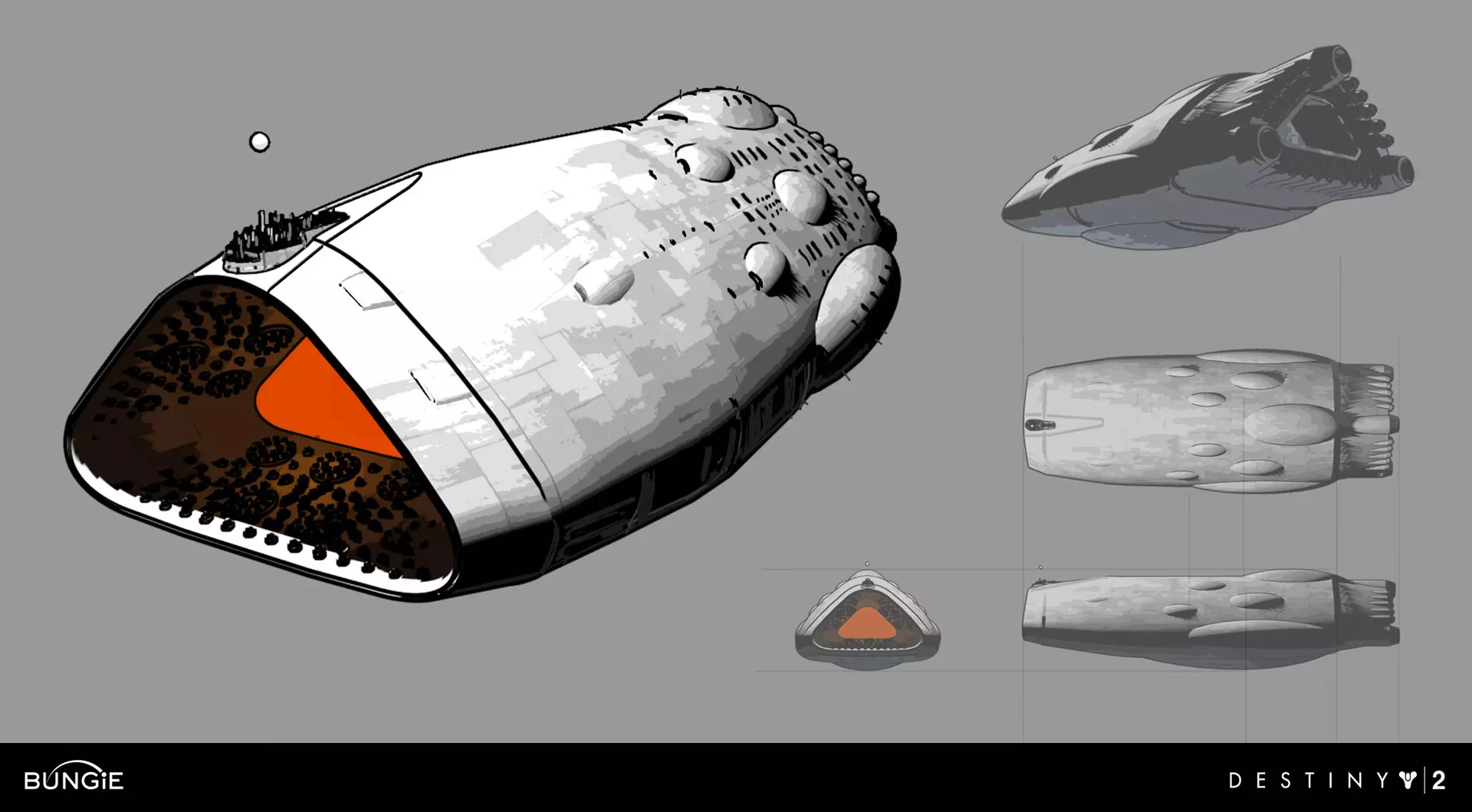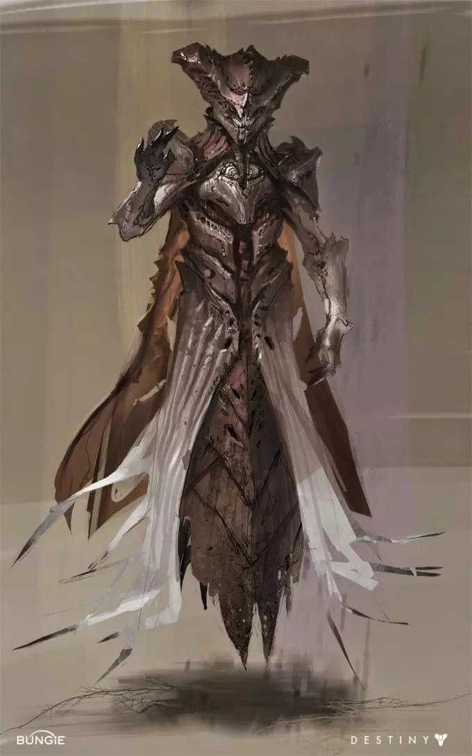 这家伙可不是什么好东西,他想夺走你的旅行者之光。而【 Speaker(来自《命运1》的某个家伙)】却说:“不行,兄弟,你得自己去争取,他可不会随随便便就把光芒拱手让人。” 然后盖欧就气得大喊大叫,还反手给了 Speaker 一巴掌。在我看来,这绝对是整个系列里最平淡无奇的死亡场面了。长话短说,盖欧入侵了最后之城,屠杀了数千人,直到守护者们发起反击,他才像个气球一样爆掉,然后就死了之类的。 “那我们怎么打败他呢?!”——某个家伙 >别管他了,霍桑都会称赞你,就好像是你阻止了红色军团一样。 卡巴尔冷知识?真的假的?自从《命运2》天选赛季中“ Almighty”被摧毁后,这些小丑就不再重要了(向那些没有忙着在Reddit和Twitter上疯狂吐槽“ Seraph Towers”的玩家致敬)。好了,言归正传,我想聊聊我真正喜欢的东西(尤其是随着“ Chosen”即将到来!):皇帝卡鲁斯和他的“ World-Eater Vessel”——利维坦! 请坐下来欣赏这些堪称杰作的概念艺术幻灯片吧~ “ World-Eater Vessel”的正视图