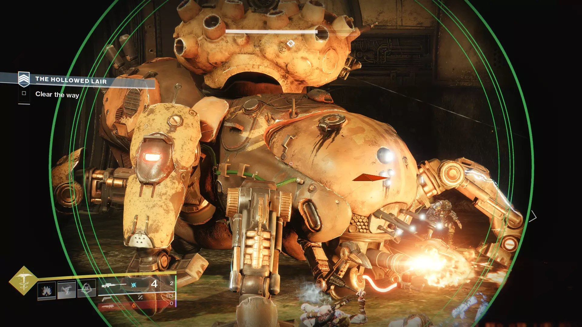 好的,这家伙对视力不太好的玩家来说可能有点麻烦。它大约70%的时间都处于隐形状态,除非击中它发光的眼睛部位。你需要持续对其造成眩晕,才能迫使它现身,这样追踪起来会更容易(或者像有些人那样,直接朝着你旁边的人正在射击的地方开火,他可能知道该打哪里)。重复此过程直到解决它就好!但要记住保持距离,它在隐形状态下仍然可以完全行动(包括向下射击和跺脚攻击)。 3. 被夺走的上尉: