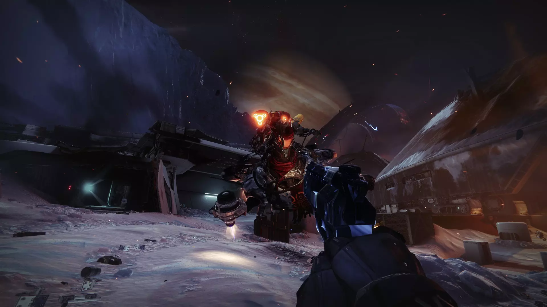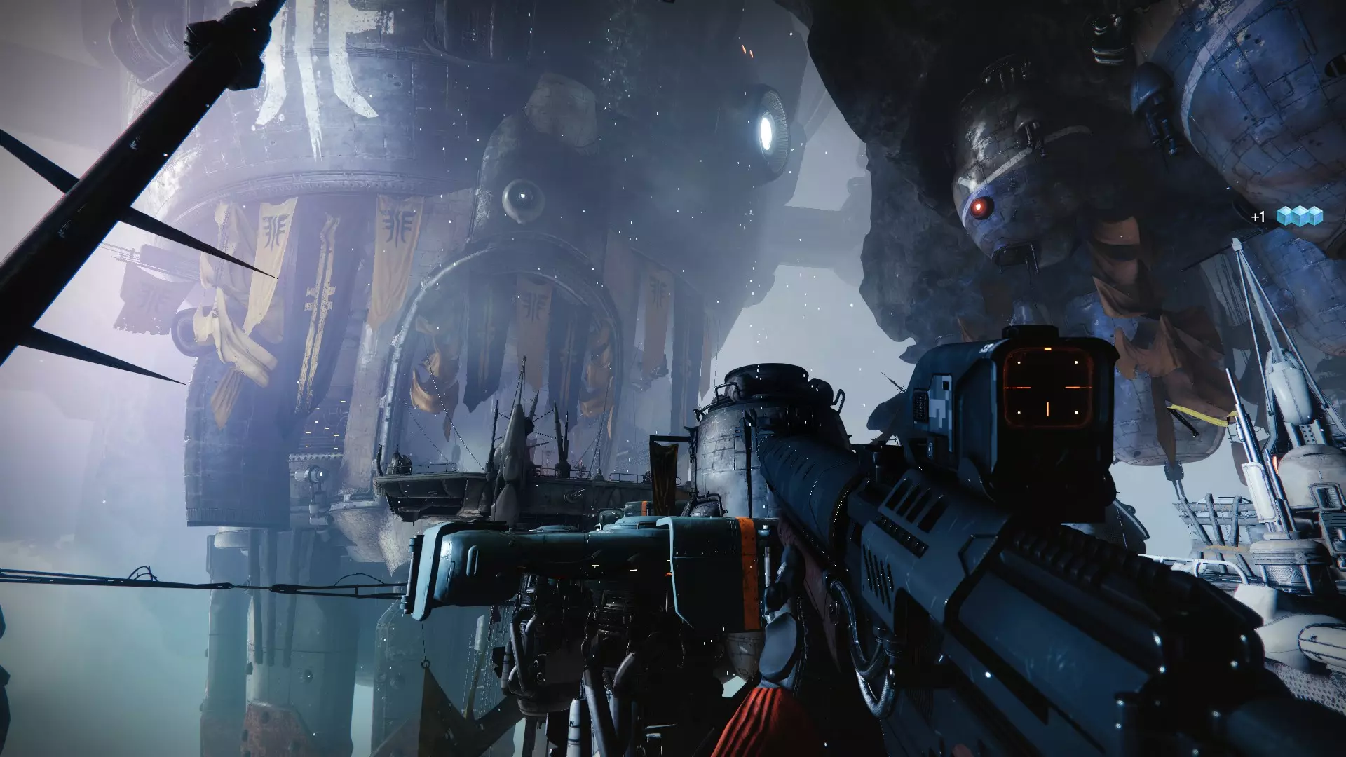 大多数巡逻单位的指挥官,你会发现这些敌人配备了跳跃喷射背包和便携式护盾(9/10的概率为 solar 元素,除非 Bungie 不想让你好过,给它们加上一些奇怪的属性)。在武器方面,他们通常携带投射步枪,因为该武器具有毁灭性的范围伤害。打破他们的护盾后,他们就和普通的军团士兵没什么两样了。 8. 巨像士兵