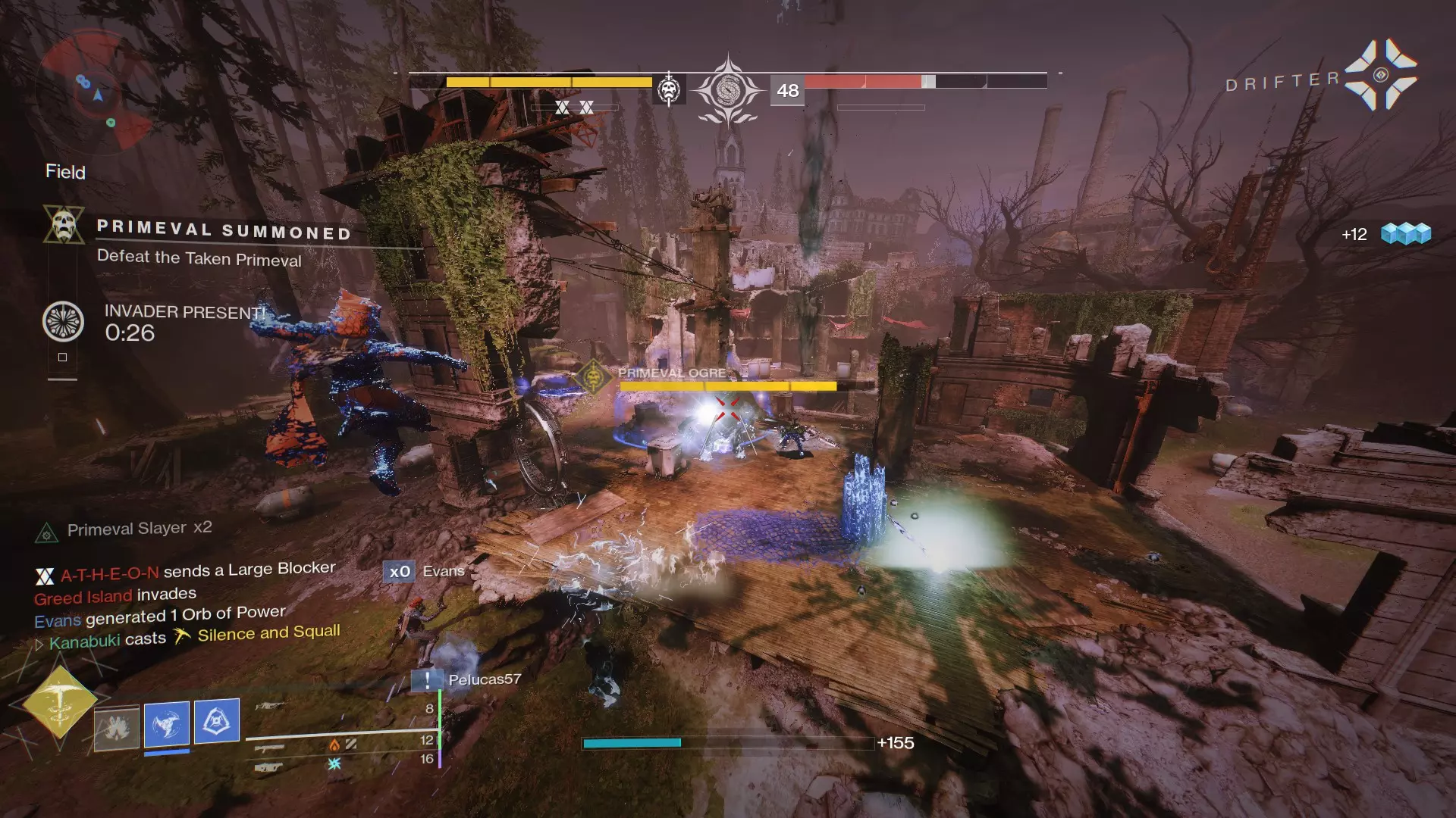 你已经存入了你的 mote(光尘),看到传送门打开了;想进去吗?那就尽管去吧!现在你来到了对方队伍的区域,你的任务是在30秒内尽可能多地消灭敌方玩家;如果时间超过30秒,当计时器归零时,你就会被拉回自己的区域。入侵会通过在传送时为你提供穿墙透视和额外护盾来鼓励更具侵略性的游戏风格——不过也别太自大,否则你可能会被狡猾的狙击手或超能技能引诱出来。 //防守:你注意到眼角余光处有一缕红色烟雾,结果却被敌方的 Xenophage(吞噬者)或 Eyes of Tomorrow(明日之眼)一枪毙命……这是为什么呢?我能给你的最佳答案是,人们仍然沉浸在【智谋巅峰】的思维模式中;成为问题的一部分,用那些枪进行反击。找个掩护,尽力用巧妙的霰弹枪上膛动作引诱敌人,或者让你的鹰眼队友立即转向那个捣蛋鬼,给他们一个教训!(免责声明:如果你被AI或敌方守护者击败,你将失去所有 mote,所以如果你攒满15个 mote,一定要谨慎行事,寻找掩护!) 第四部分:【原始首领】!