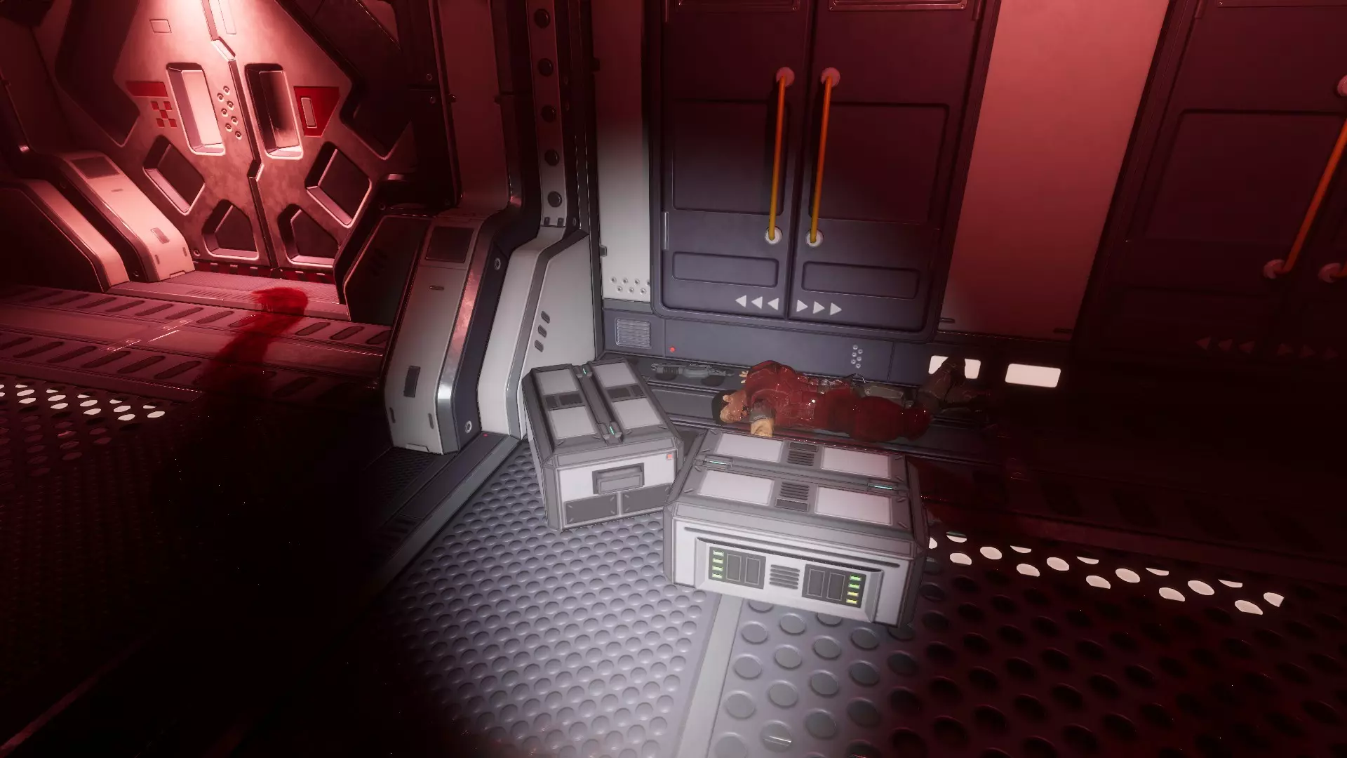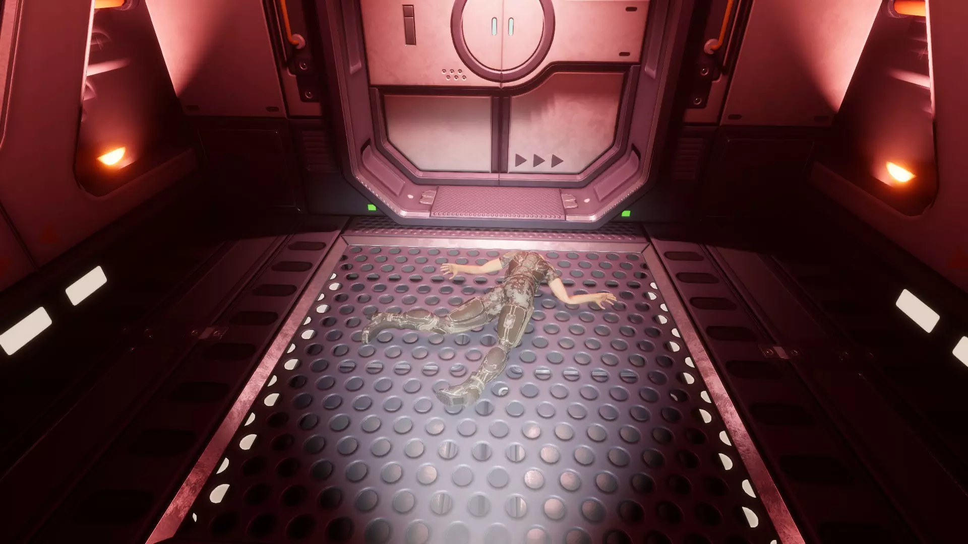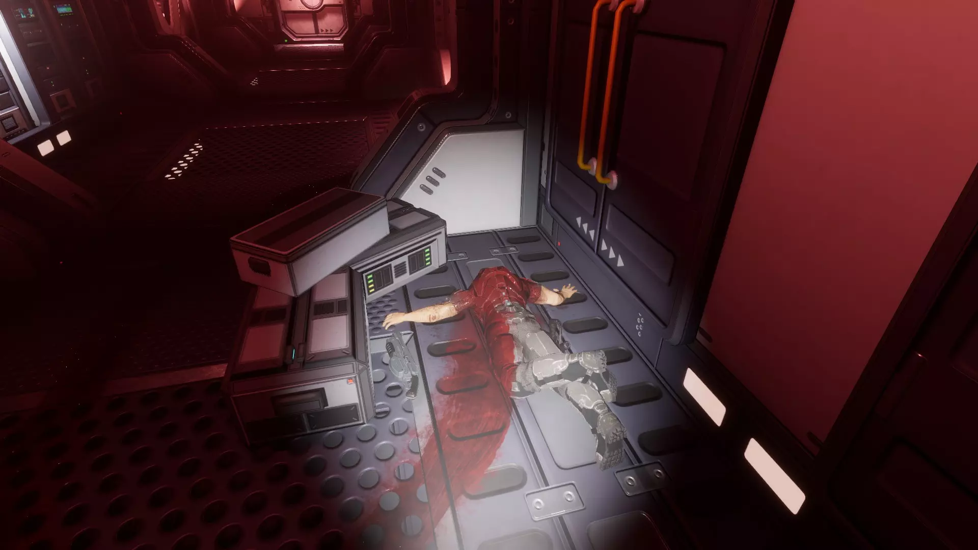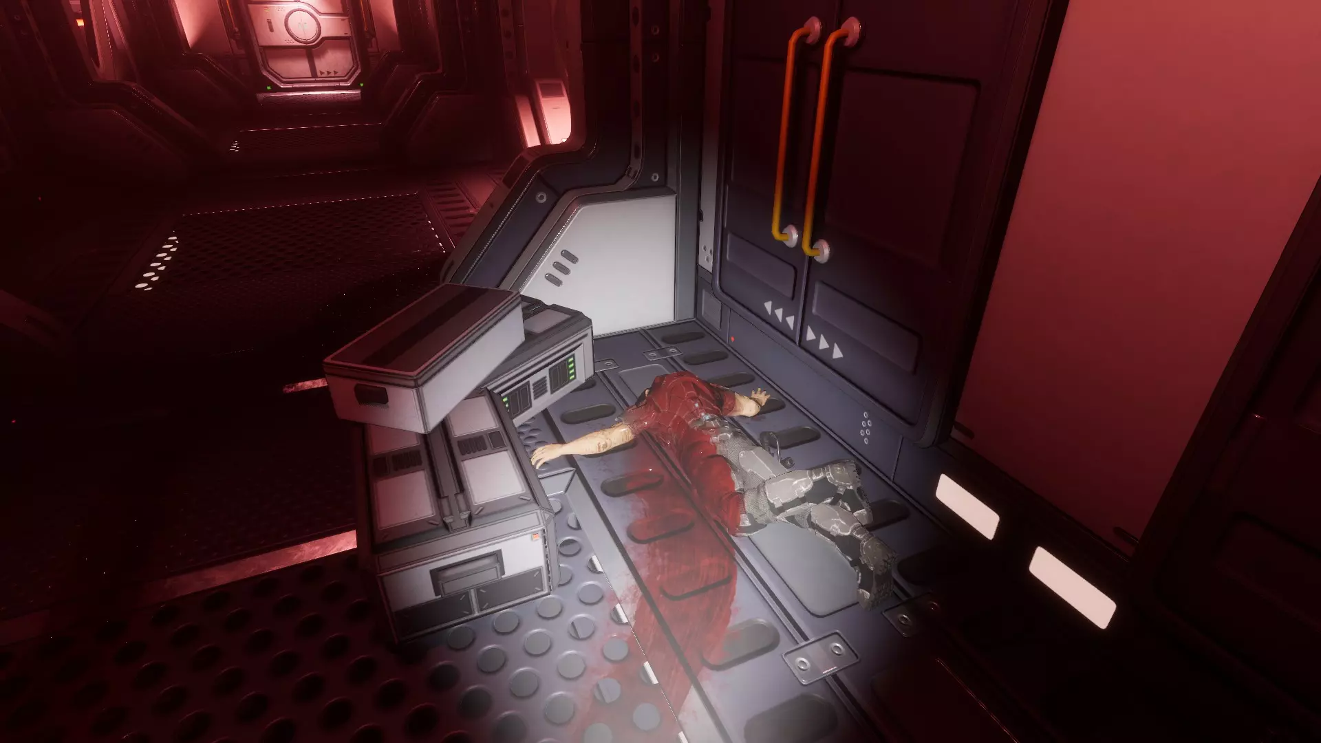 坠落的尸体 一具尸体掉落在出口门前。