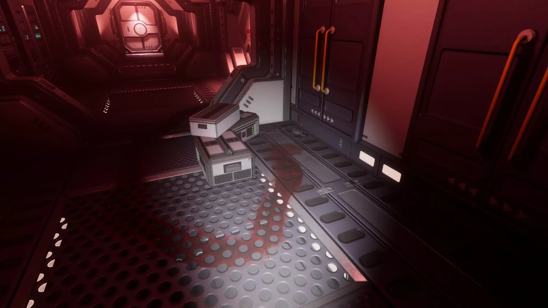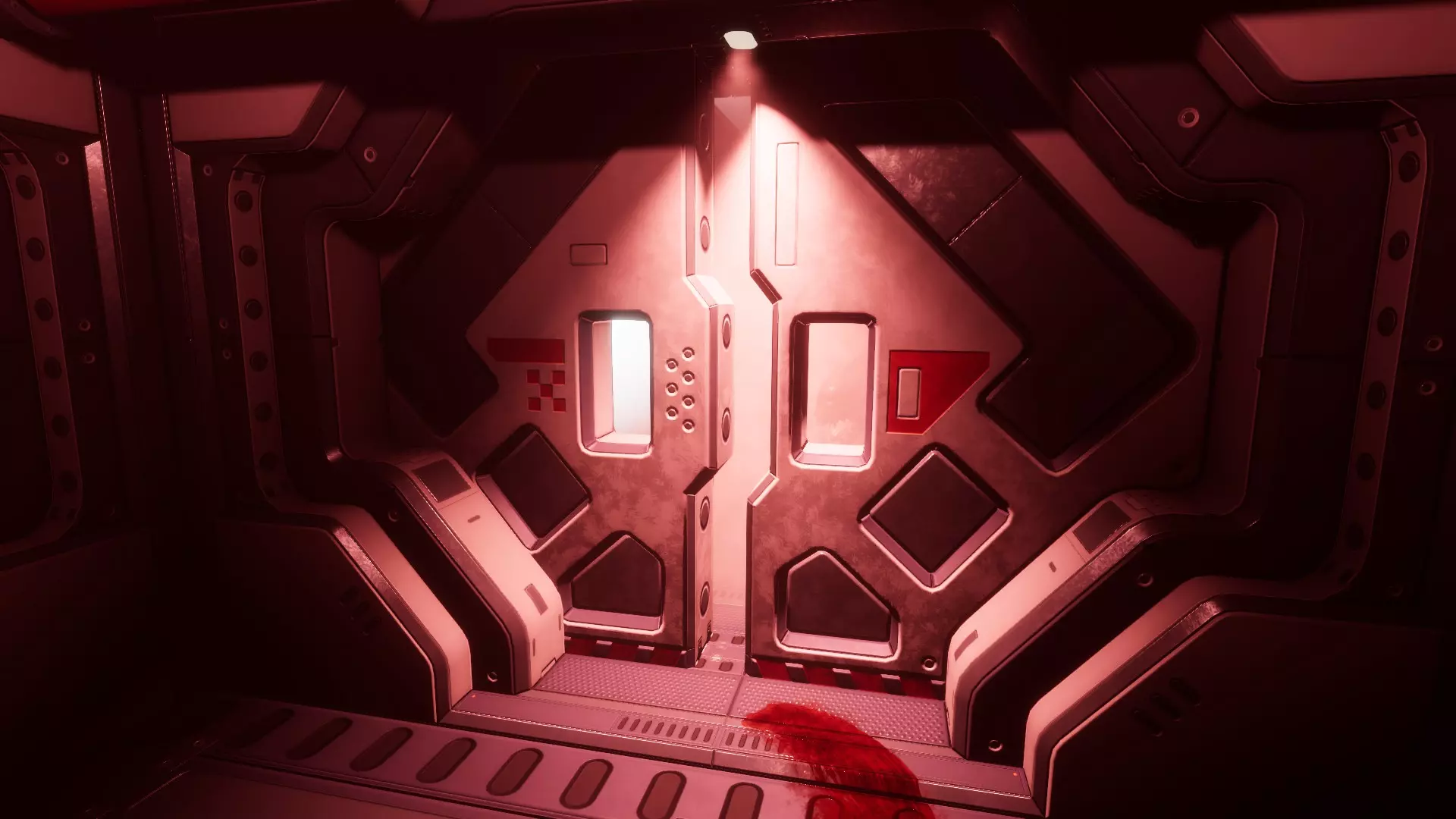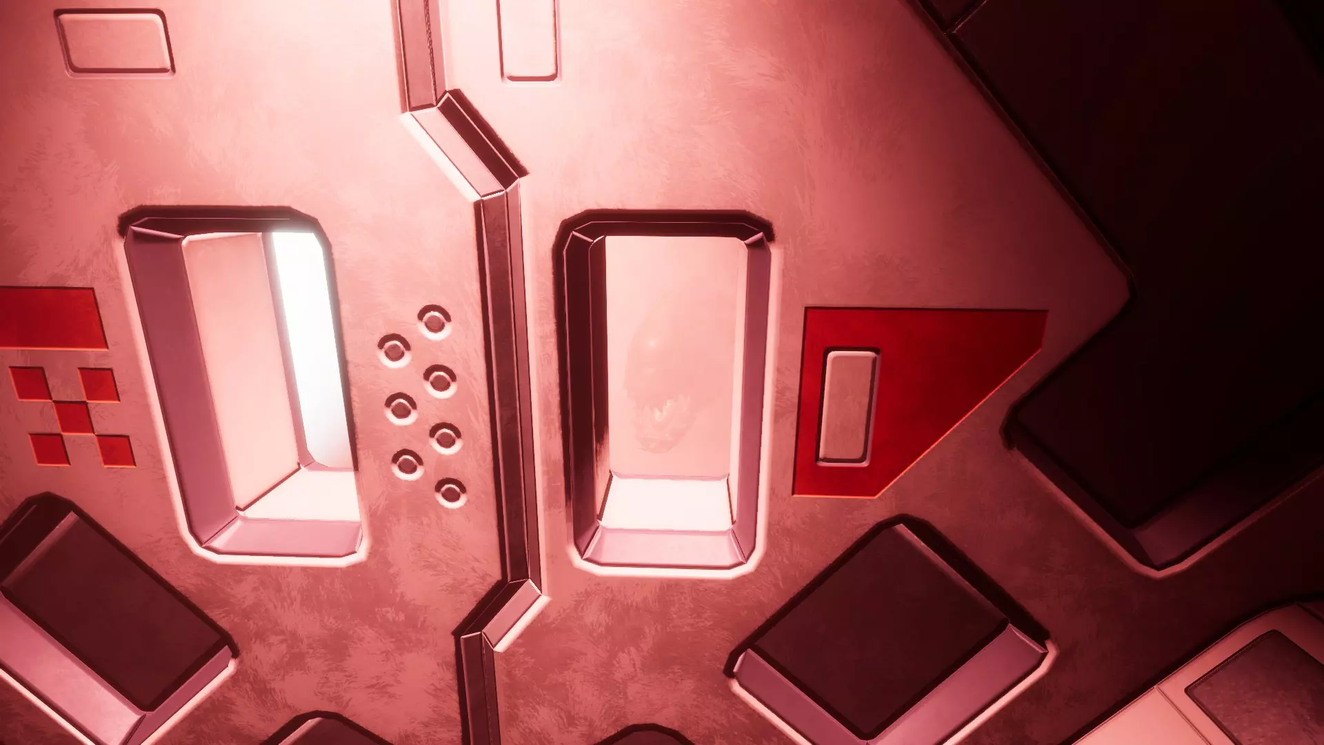 等待的异形 异形在双扇门后。 你可以透过小窗户看到它。 房间可能是血腥的或弥漫着雾气(不确定这些是否应被视为不同的异常现象)。