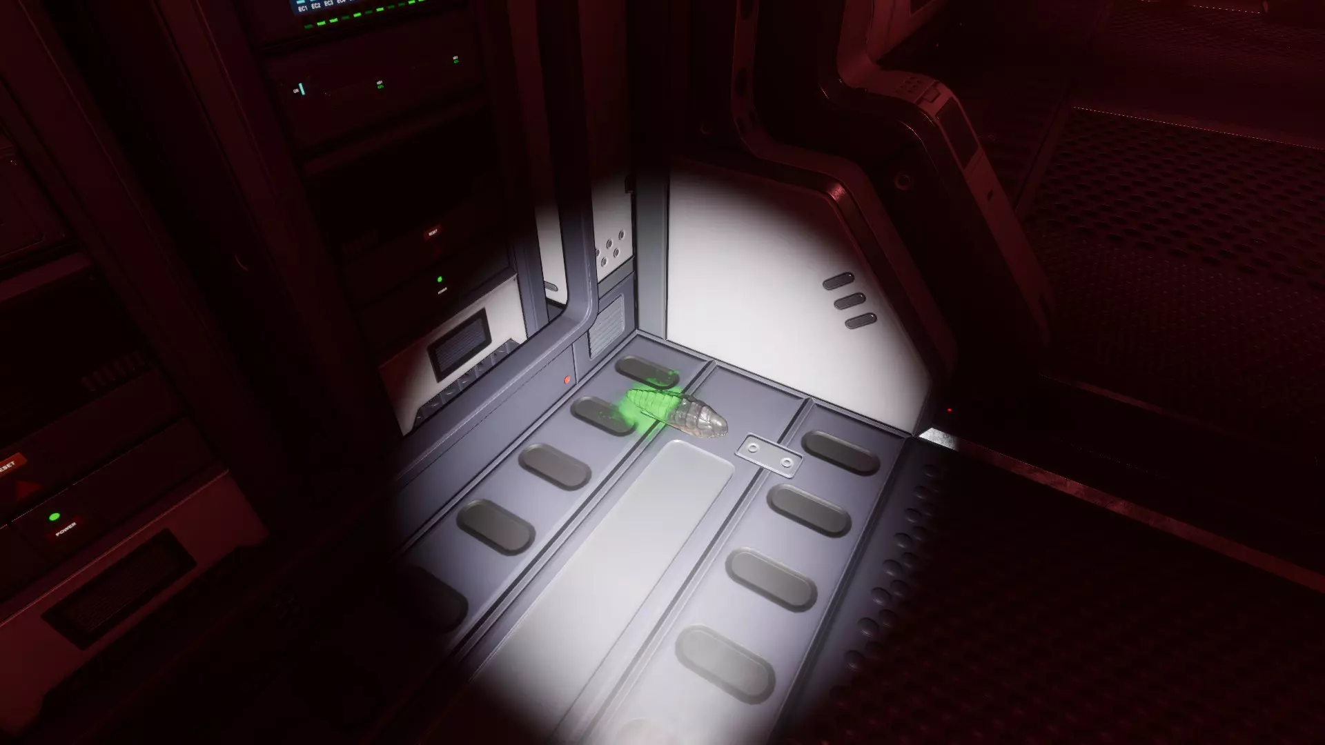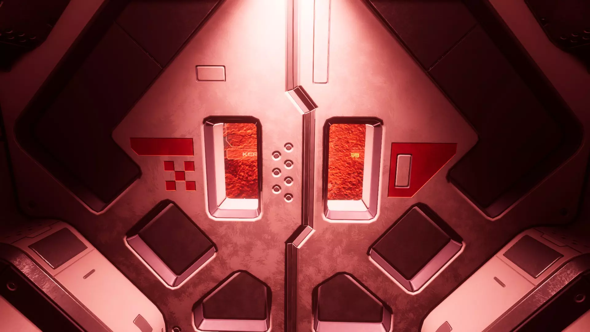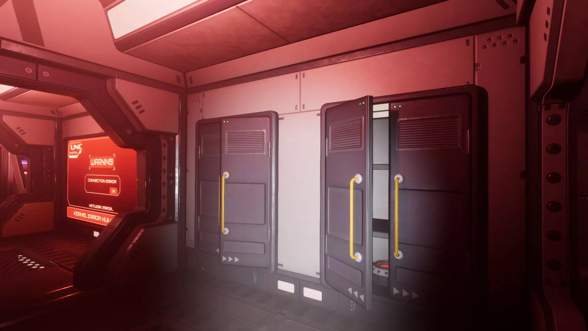 等待的异形 异形在双扇门后。 你可以透过小窗户看到它。 房间可能是血腥的或弥漫着雾气(不确定这些是否应被视为不同的异常现象)。