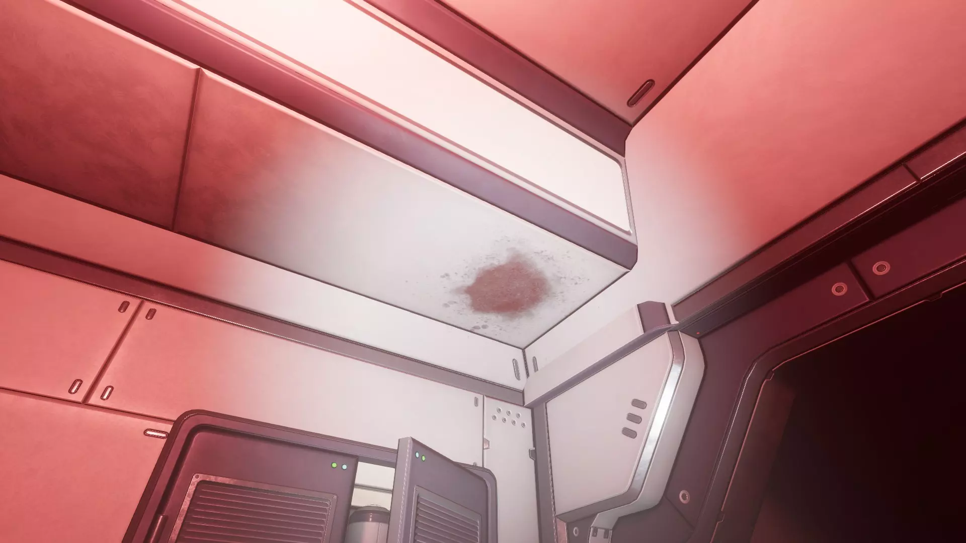 血池 出口门前的天花板上正滴着血。地上有一滩血。