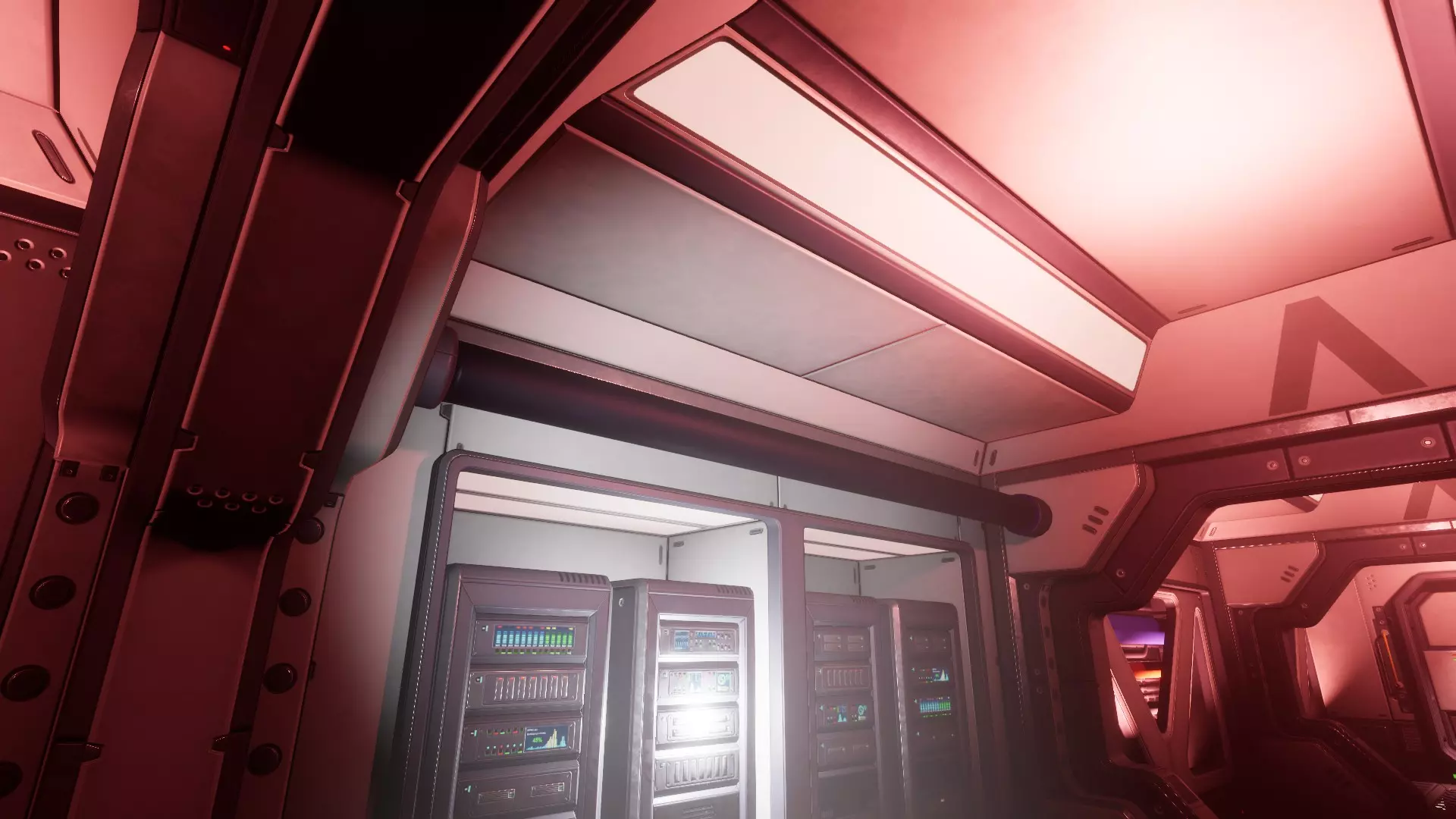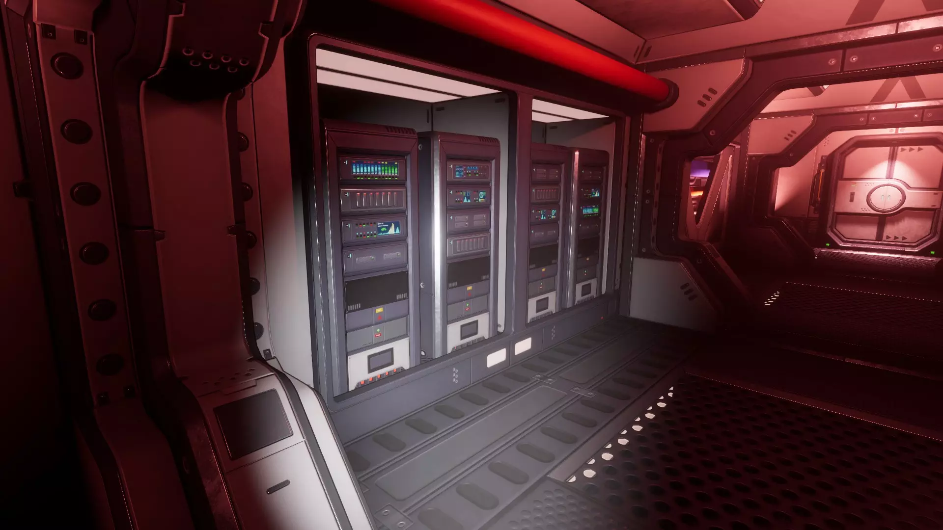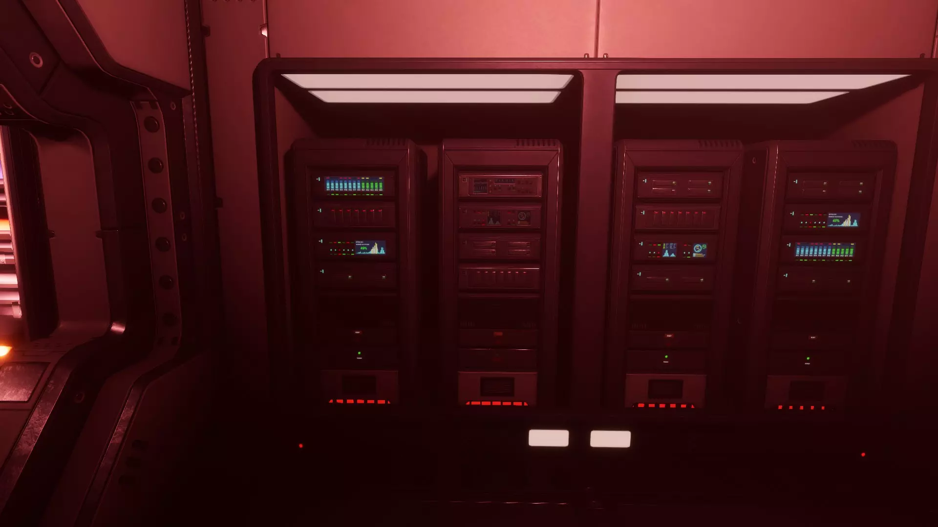 黑色管道:双门前服务器机架上方的管道为黑色,本应是红色。