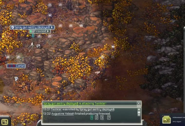 折腾了这么久,我才发现可以在另一个城镇购买未鞣制的兽皮,鞣制后就能计入成就进度!唉,我真不该在丘陵地形重新开档的…… 【枪械匠】 需要10把步枪和20发弹药。 你需要建造机械工坊来制造步枪。 为此,你需要一座黄金熔炉和一名化学家,或者从星辰陷阱镇购买组件。 但无论如何,你都需要一名化学家和熔炉来制造弹药,所以最好还是雇佣一个人。希望他/她的品行还不错,记住,不只是专业的化学家才有相关技能,农民也可能具备一些化学技能,而且完全能胜任。在决定是否雇佣专业化学家之前,先检查一下你的殖民者技能吧。建造机械工坊,你需要: 1) 金属车床组件(120信用点) 2) 人力单元(75信用点) 3) 金属加工工具组(69信用点,可通过锻造坊轻松制作) 4) 一座工坊建筑(制作难度较低) 若要制造步枪,你还需要简易锻造坊和火石(希望你有保存)。
