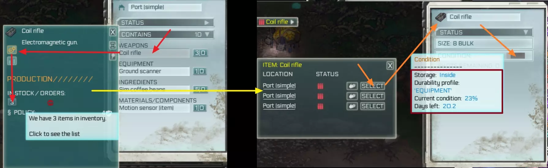 进入物品状态界面,你可以查看物品还有多少天会损坏。