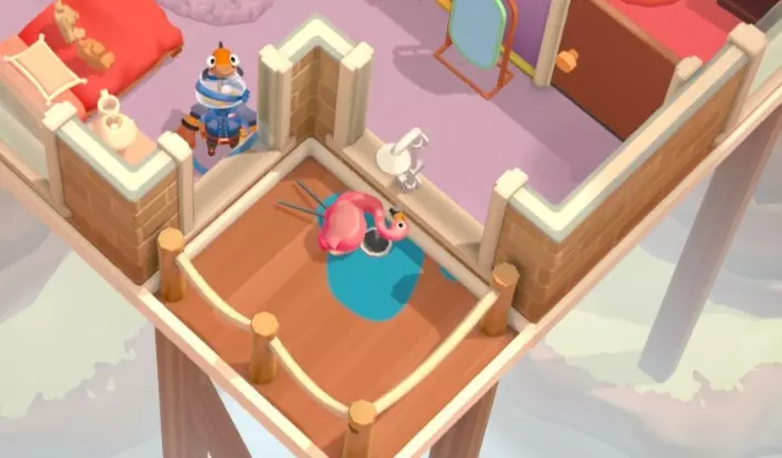 破坏所有窗户 保持火烈鸟干净 把二楼阳台的火烈鸟拿到一楼浴室洗澡,花洒拍打出水 这个马赛克笑死
