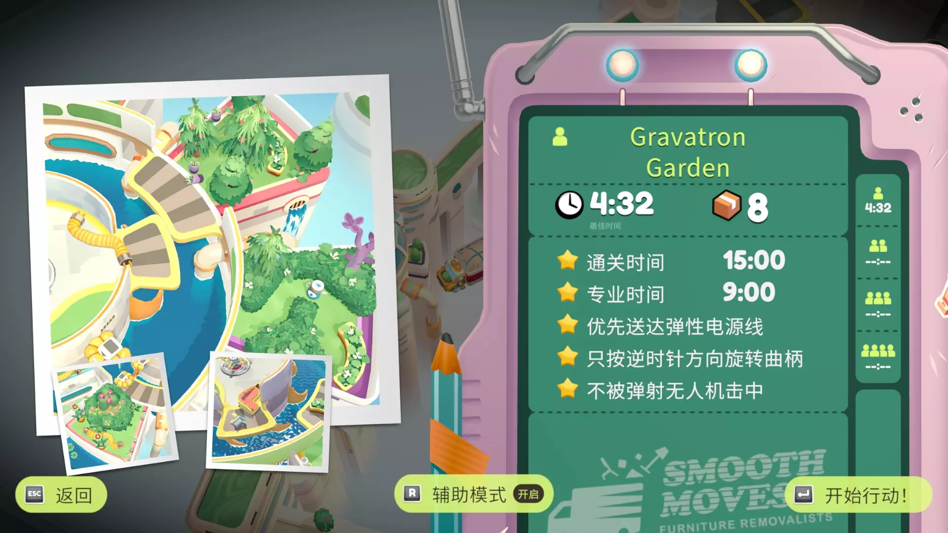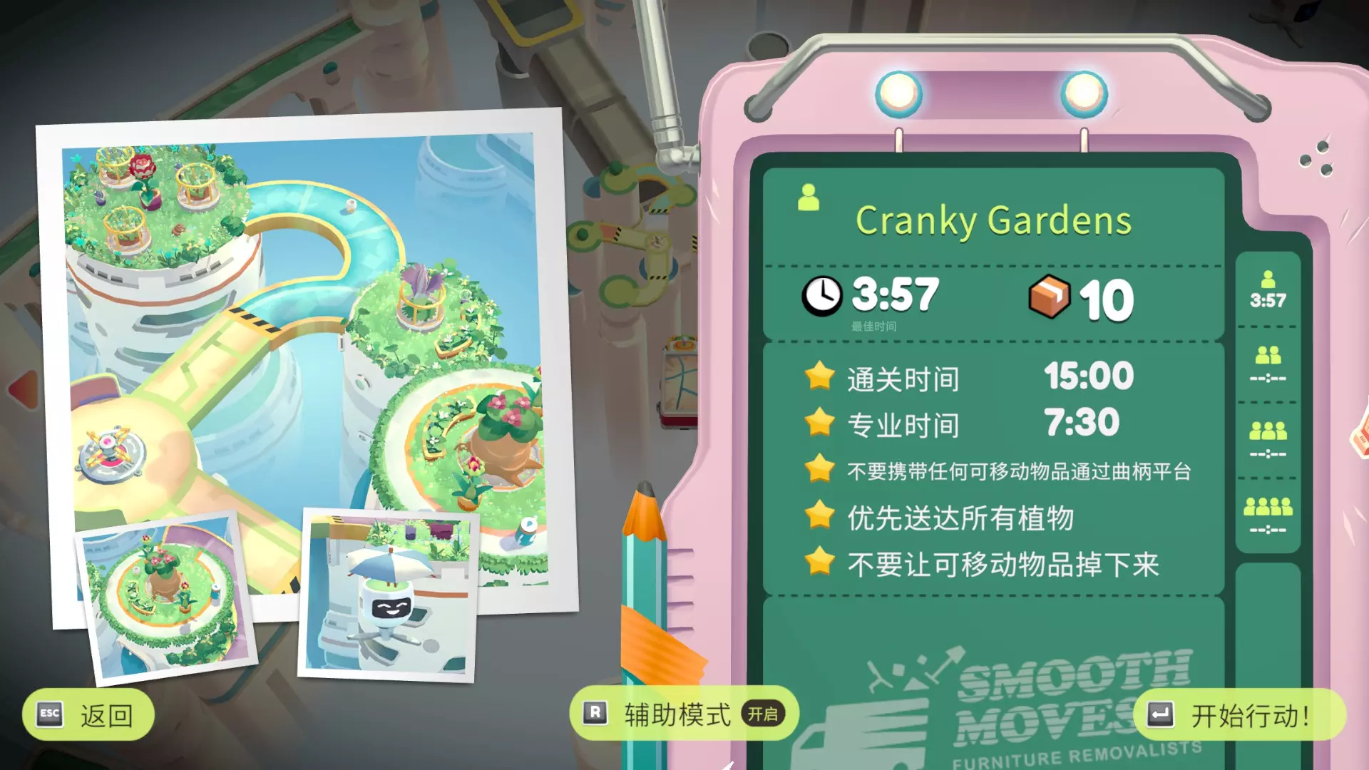 优先送达所有植物 不要让可移动物品掉下来 重力花园