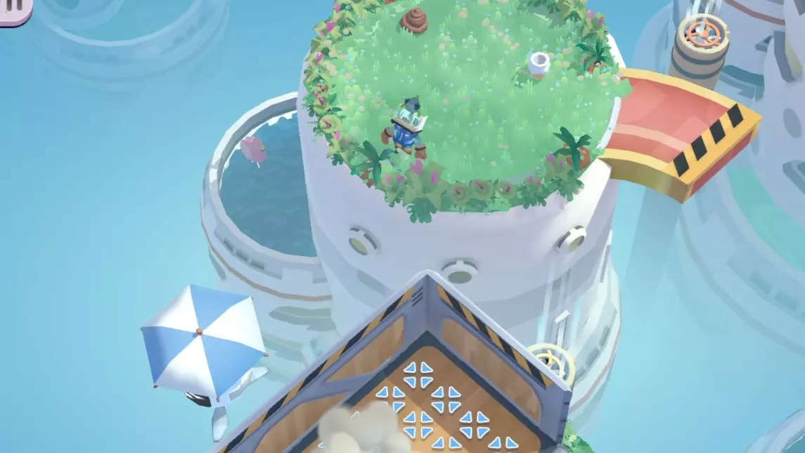 不要携带任何可移动物品通过曲柄平台(即中间的旋转平台);利用这两把伞和平台间的风扇