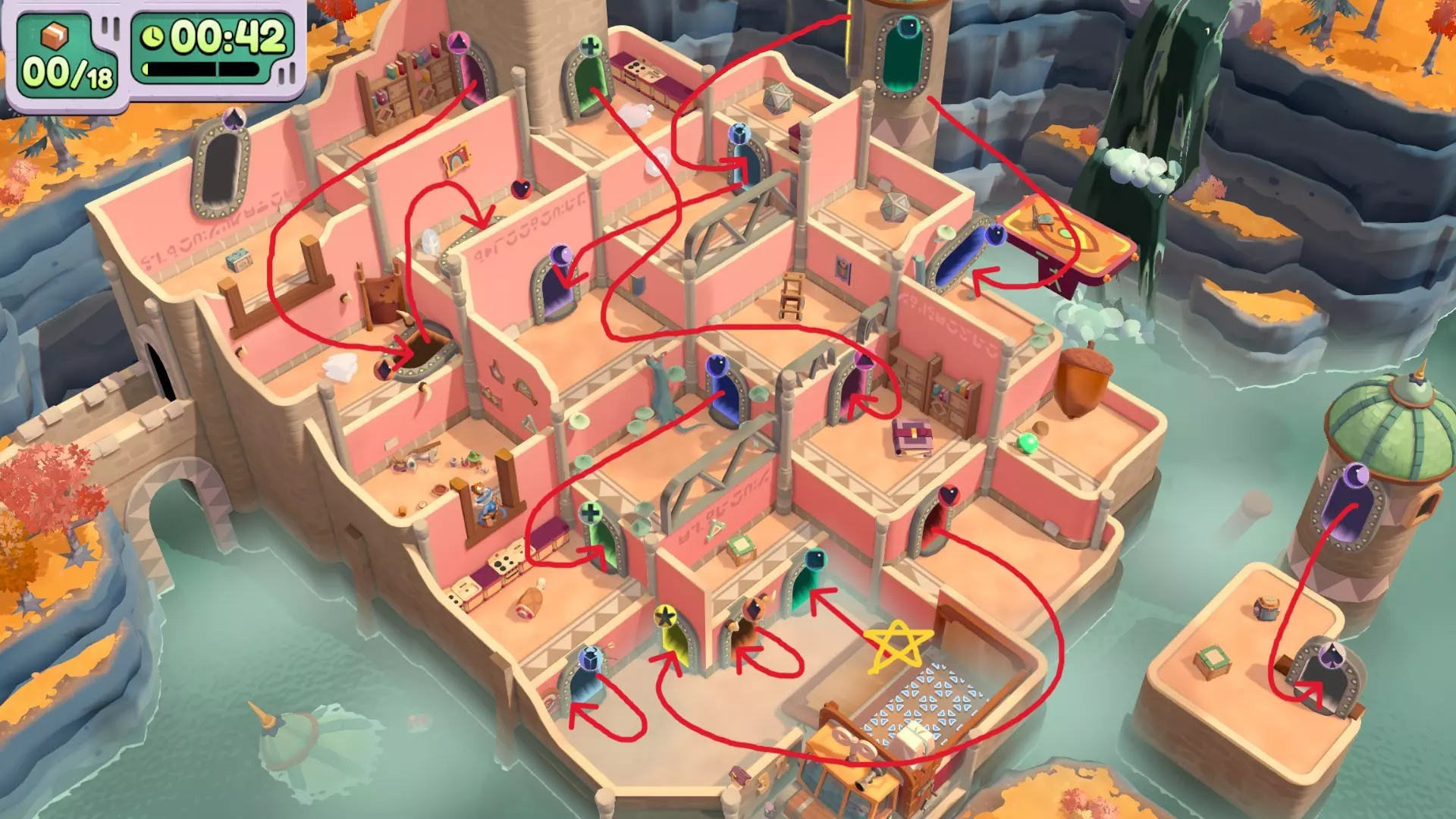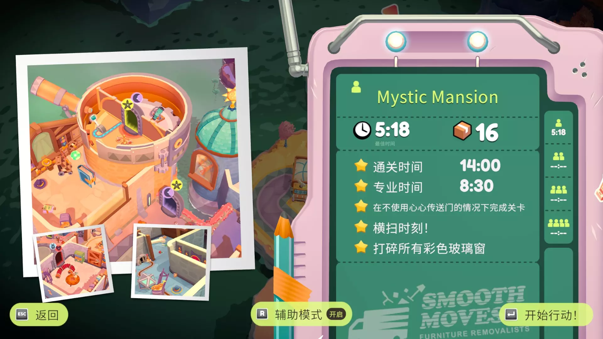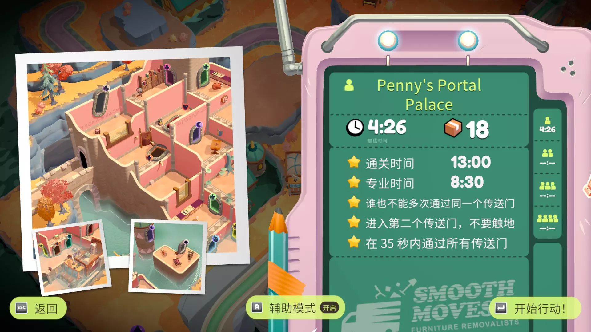 简直是单人强行通关的折磨关卡(哭)。谁也不能多次通过同一个传送门。单人/辅助模式和双人模式的家具会有些不同,双人游玩建议参考相关路线攻略。